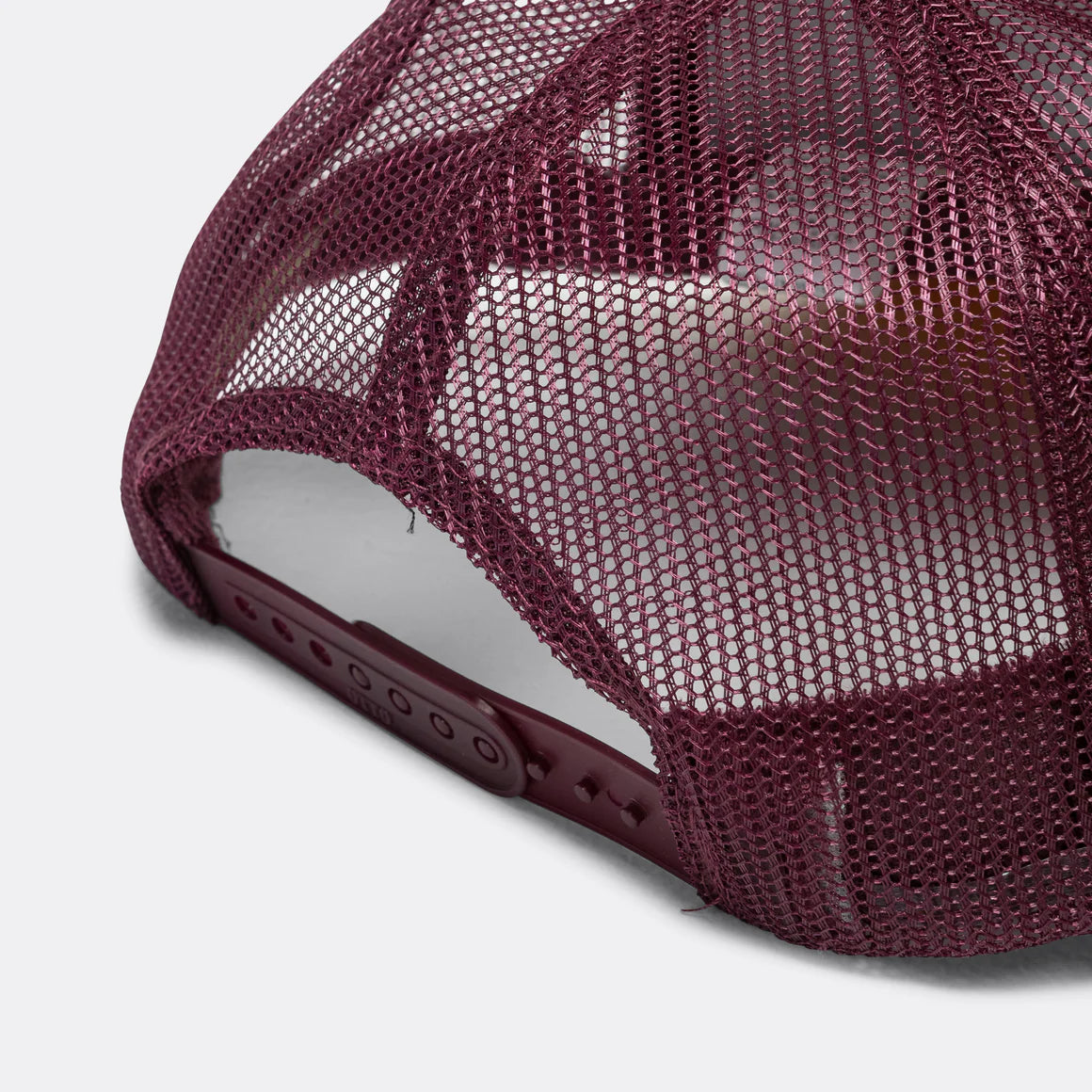 Classic trucker construction featuring a structured 5-panel silhouette, pre-curved brim, mesh ventilation, and snapback adjustability