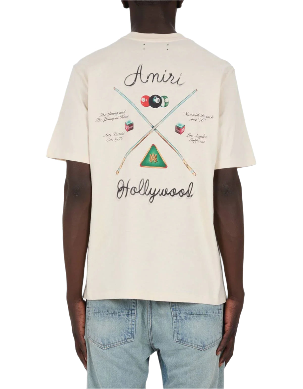 Serve bold street style with the Amiri Pool Cue Tee in alabaster. With its vintage-inspired graphic and premium cotton feel, this tee delivers effortless cool for any casual rotation.