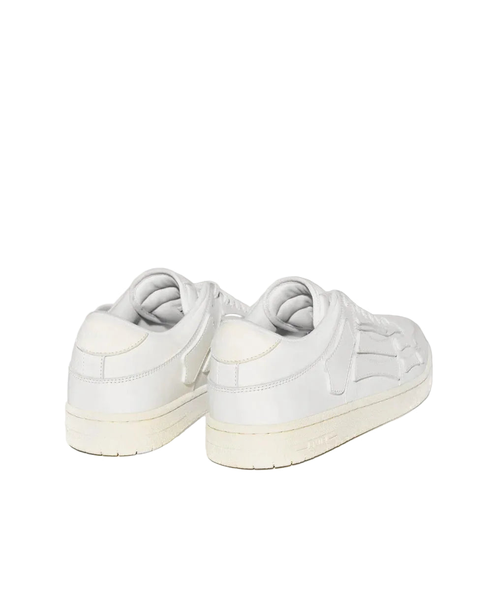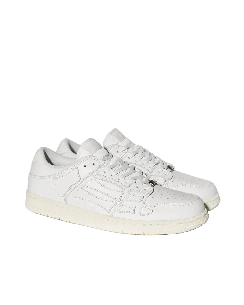 The Amiri Skeleton Top Low in 'Vintage White' reimagines classic luxury sneaker design with bold graphic leather appliqués and premium materials. Crafted with a genuine leather upper and laid-back low-top silhouette, these sneakers feature Amiri’s distinctive skeleton-inspired sidewall accents and branded hardware for standout streetwear appeal. Pair them with denim, tailored trousers, or casual fits for a refined yet urban look that blends designer energy with everyday wearability.