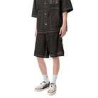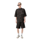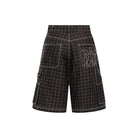 The Amiri MA Quad Work Short in 'Black' for Pre-Fall 2025 features the house’s custom-woven monogram print on classic workwear-inspired silhouettes. Crafted from cotton-linen, it’s detailed with contrast topstitching, a hammer loop, and an embroidered house logo.