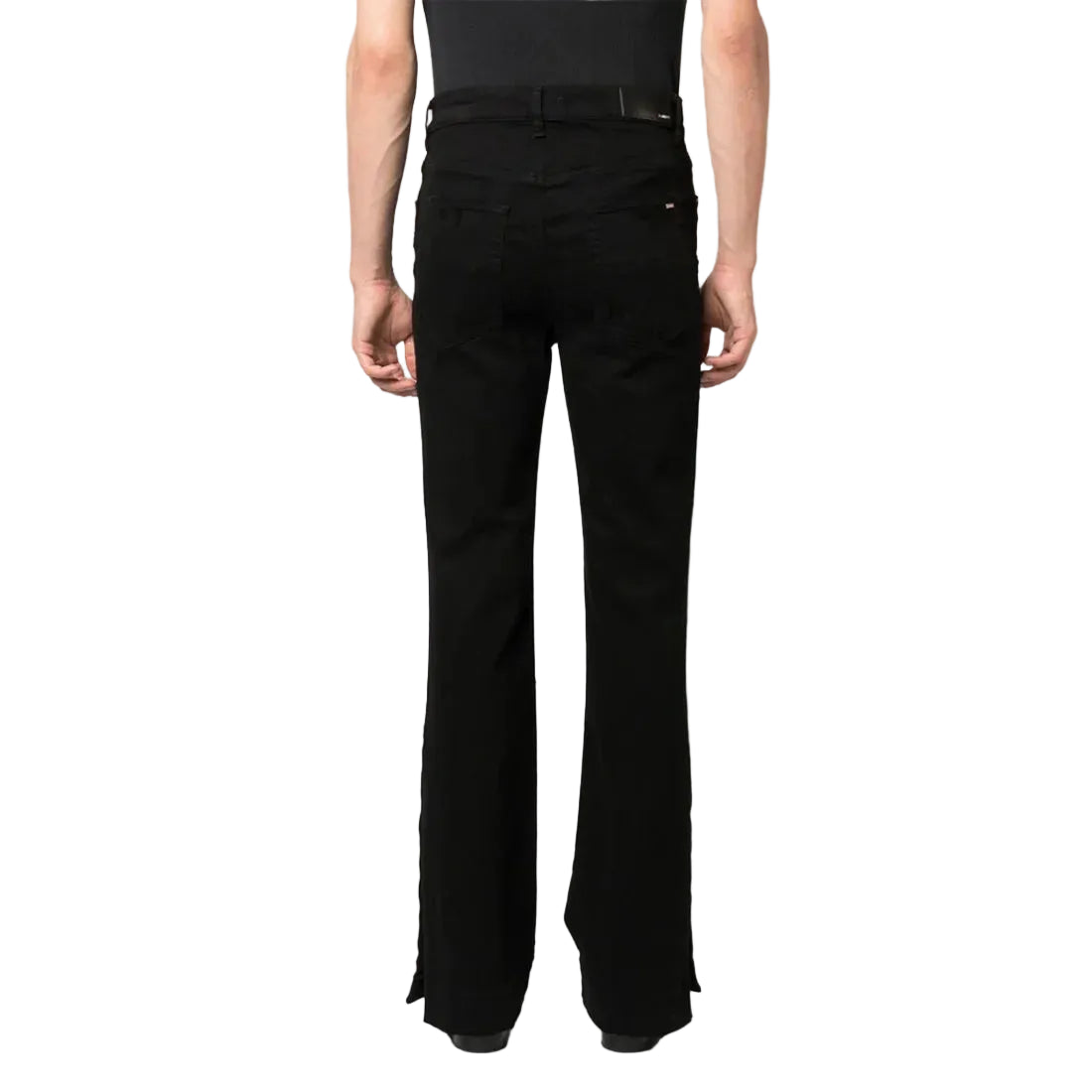 The Amiri Stack Kick Flare Jeans in 'Black' deliver standout premium denim with a contemporary silhouette, featuring a unique stacked knee design and subtle kick-flare leg. Crafted from high-quality stretch denim, these jeans combine urban edge with elevated tailoring for a versatile staple that pairs effortlessly with tees, knits, and statement outerwear.