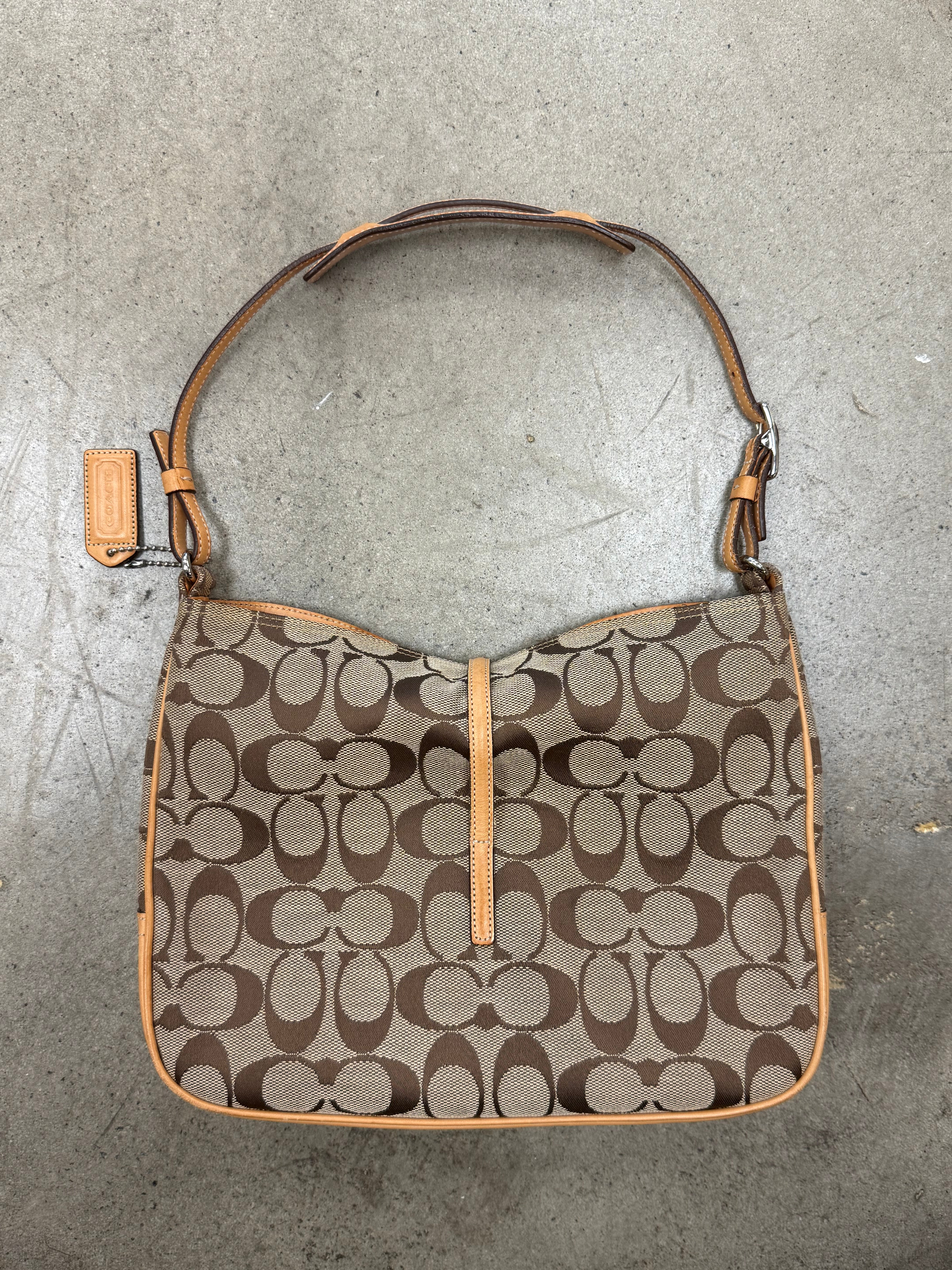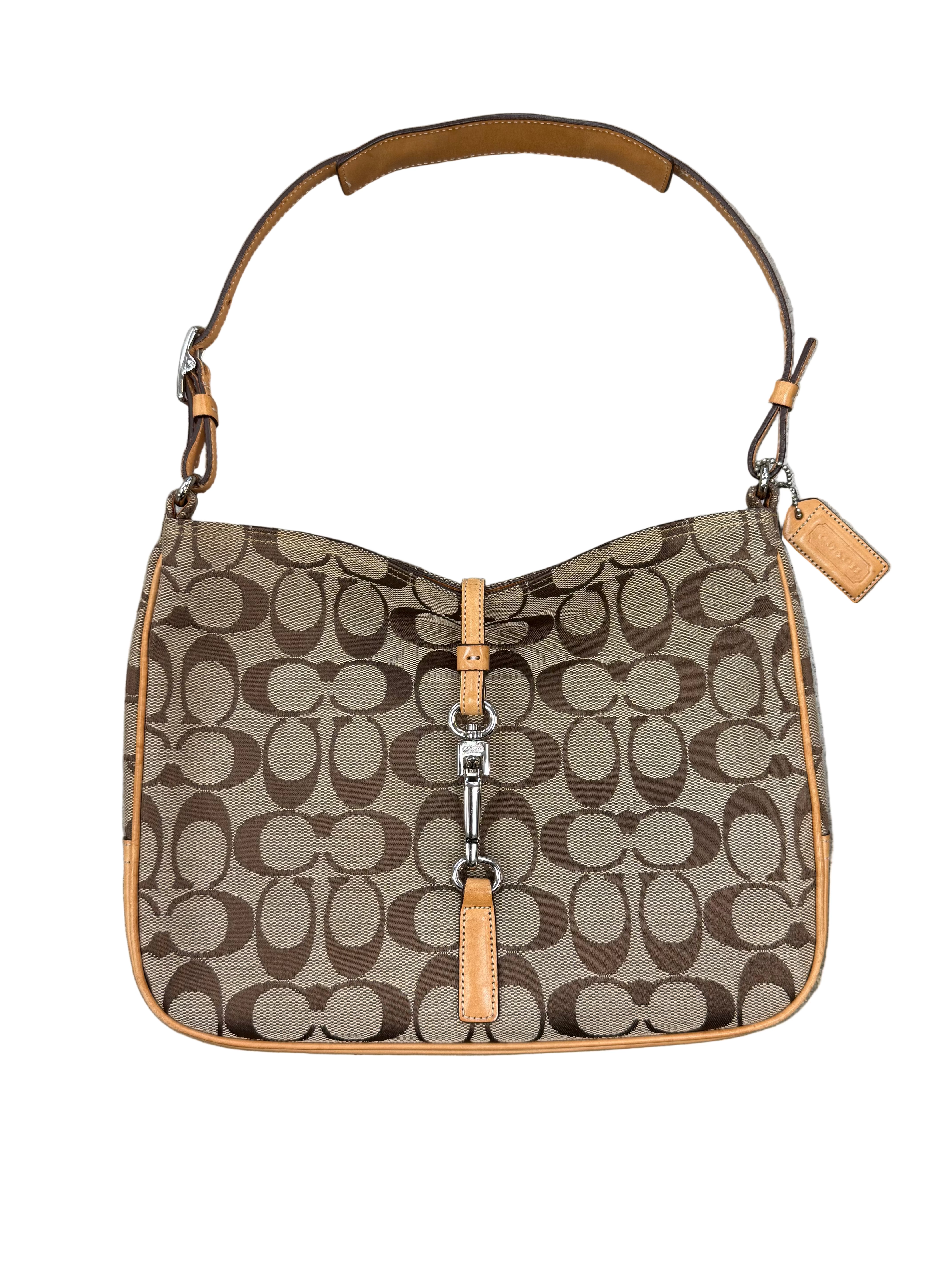 Buy the Coach Hobo Signature Clip Canvas Handbag 'Beige'.