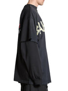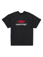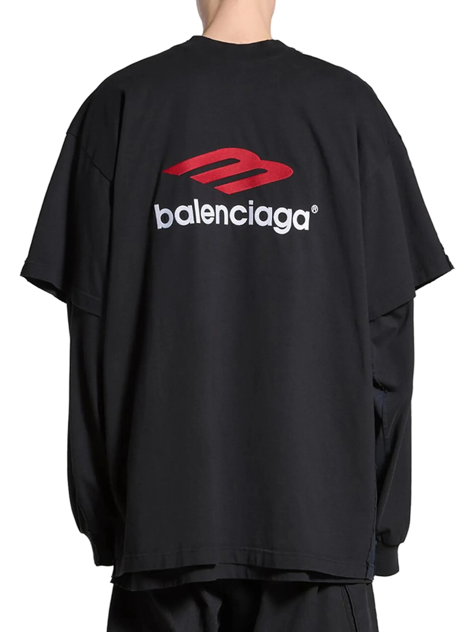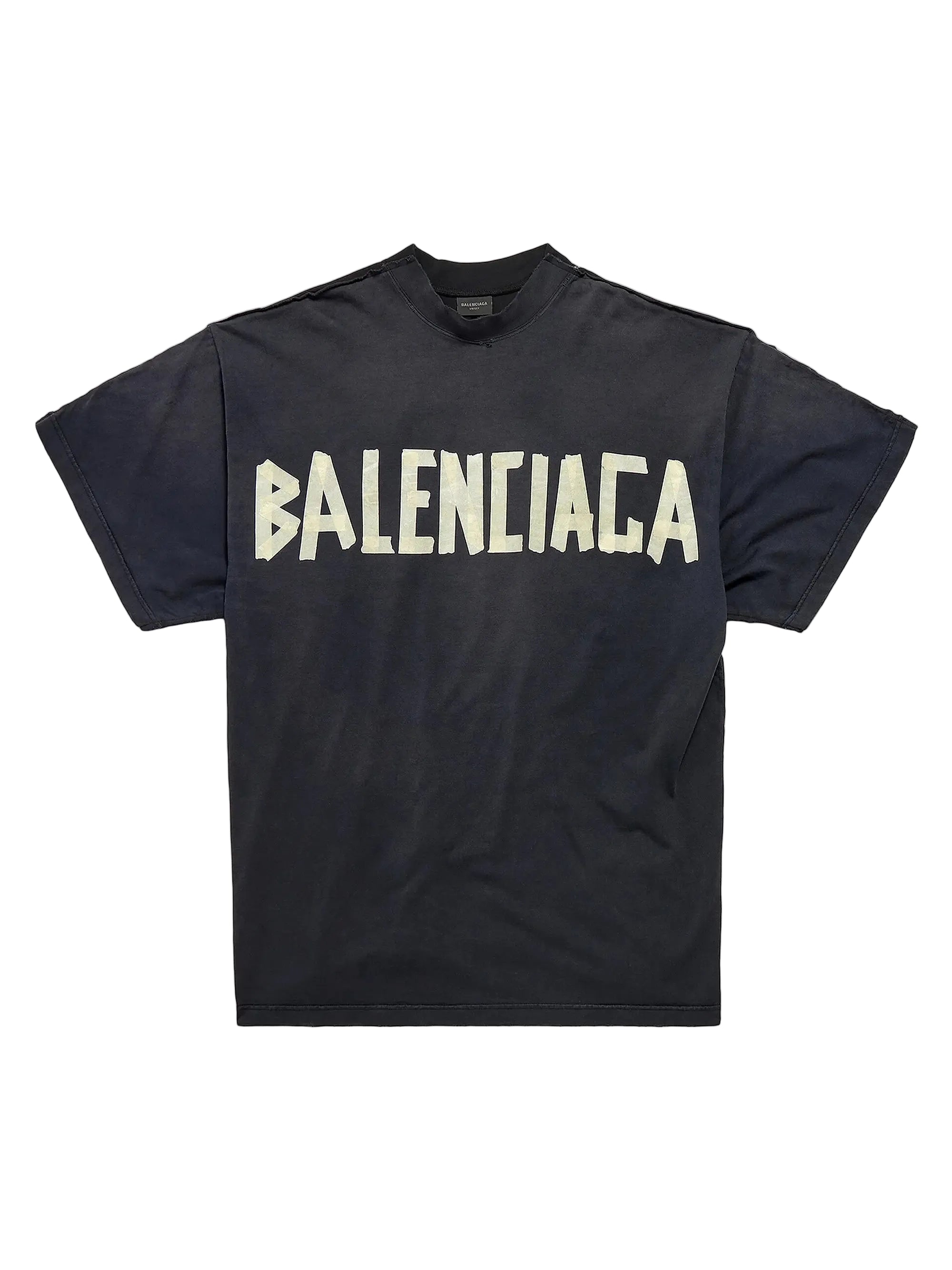 The Balenciaga Tape Type Double Front T-Shirt in 'Faded Black' is an oversized, unisex statement piece that fuses avant-garde design with streetwear energy. Crafted from vintage cotton jersey with a worn-out, washed-effect finish, it features bold tape-style logo branding at the front and embroidered 3B sports-inspired graphics at the back.