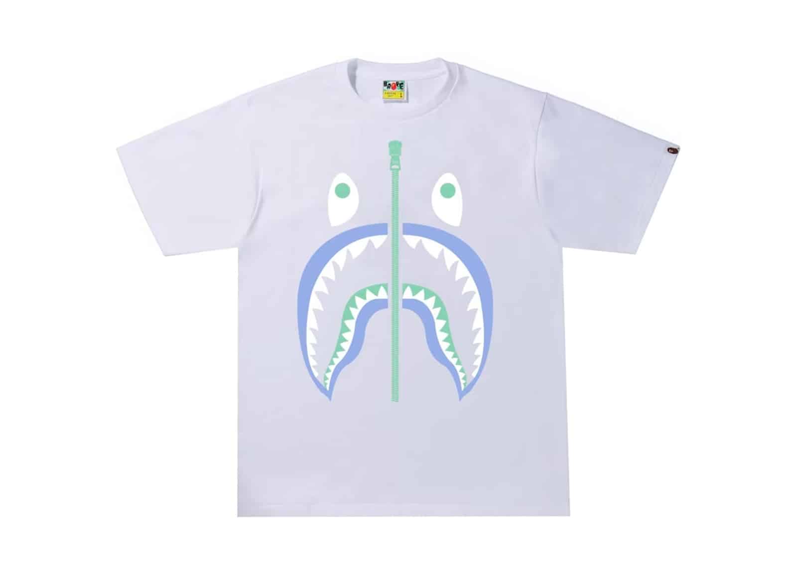 White base with Bape shark and text code camo graphics