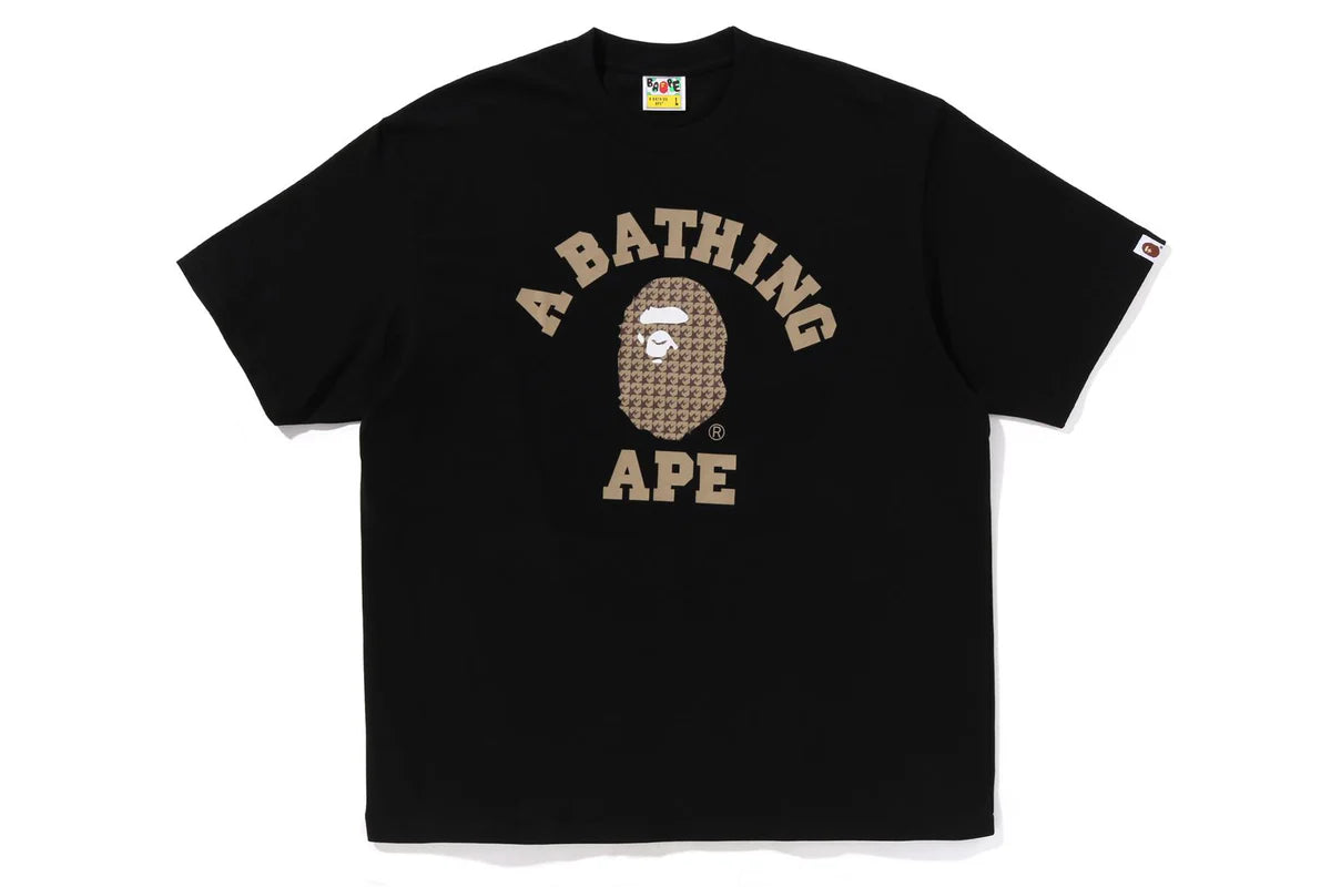 The Bape Sta Houndstooth College Relaxed Fit Tee 'Black' puts a fresh spin on Bape’s signature streetwear aesthetic. Featuring the classic Bape Sta logo reworked in a standout houndstooth pattern, this tee balances bold design with a relaxed silhouette for everyday wear. Its clean black base makes the graphic pop while keeping the look versatile.