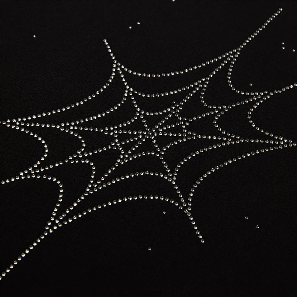 Black base for a clean canvas that highlights the rhinestone graphic elements.