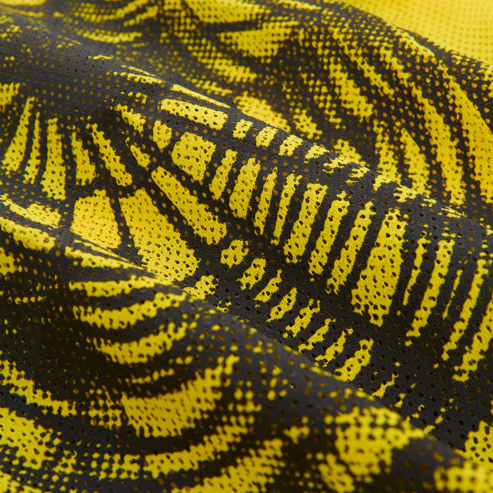 Inject bold colour and streetwear edge into your rotation with the SP5DER Yellow “Speedway” Long Sleeve. Designed with performance inspiration in mind, this piece features a bright yellow base, printed graphics on the front, a V-neck detail, ribbed cuffs, and a woven logo label on the sleeve hem. The mesh-oriented fabric gives it light movement and a subtly sporty texture.