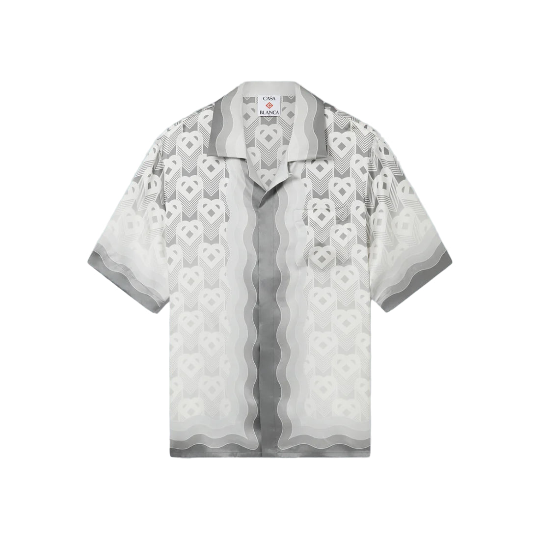 Casablanca Short Sleeve Cuban Collar Silk Shirt 'Grey Gradient Heart Monogram'