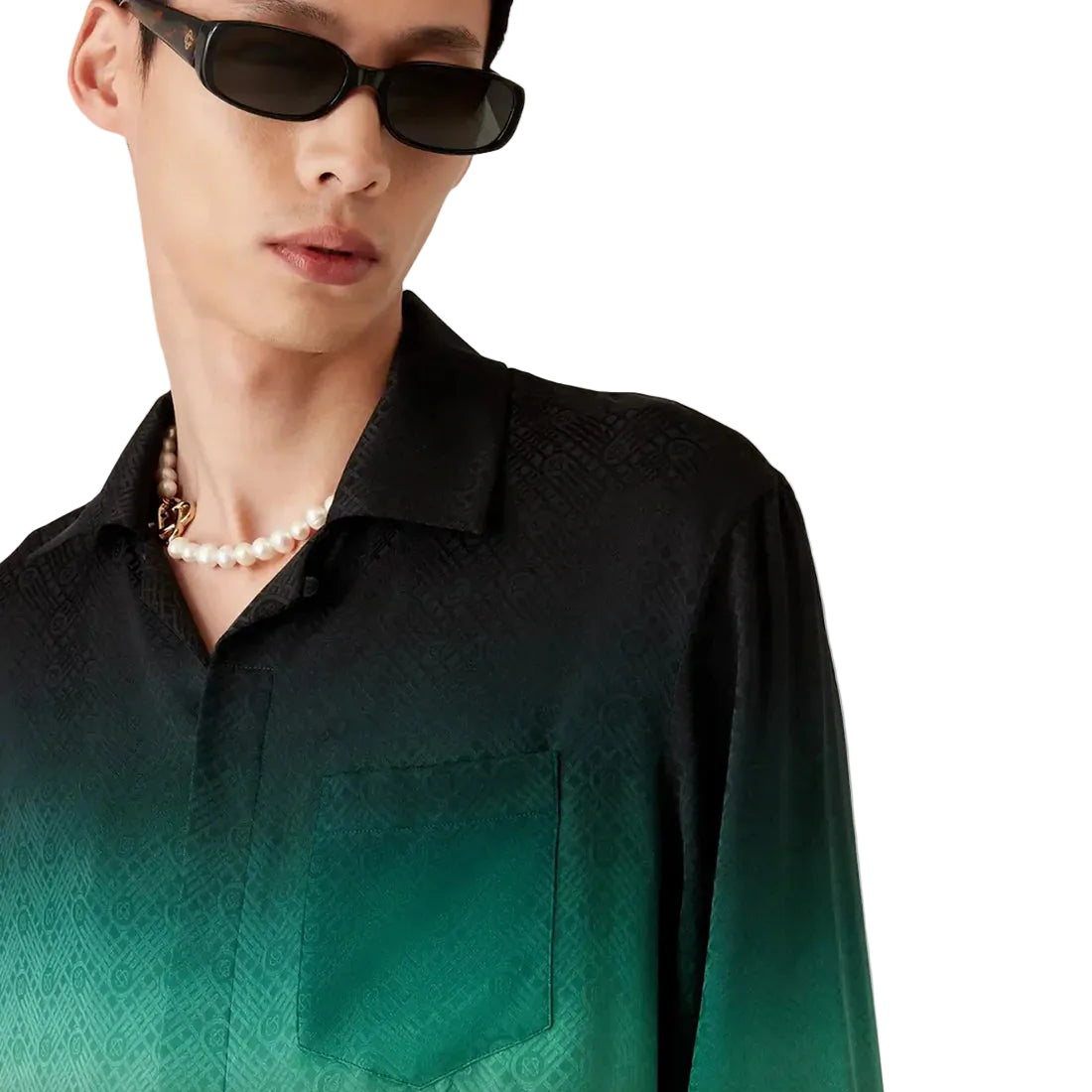 Casablanca Gradient Ping Pong Jacquard Long Sleeve Silk Shirt 'Green Black'