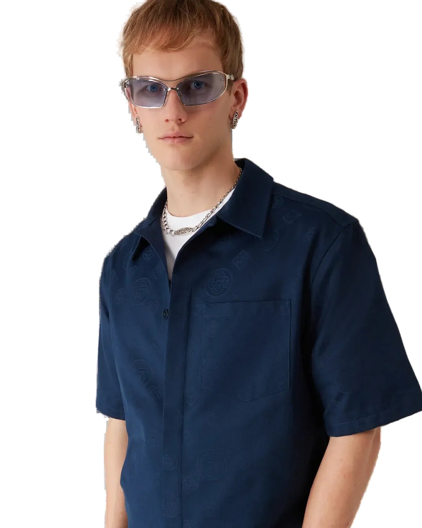 Casablanca Monogram Short Sleeve Shirt 'Navy'