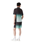 The Casablanca Jacquard Monogram Football Shirt 'Gradient' offers a refined take on retro sportswear, blending luxury craftsmanship with a nod to Tokyo's Park Hyatt aesthetic. Crafted from gradient jacquard monogram fabric, this short-sleeve shirt features a ribbed collar, the brand's signature diamond logo patch, and a Casablanca logo across the chest.