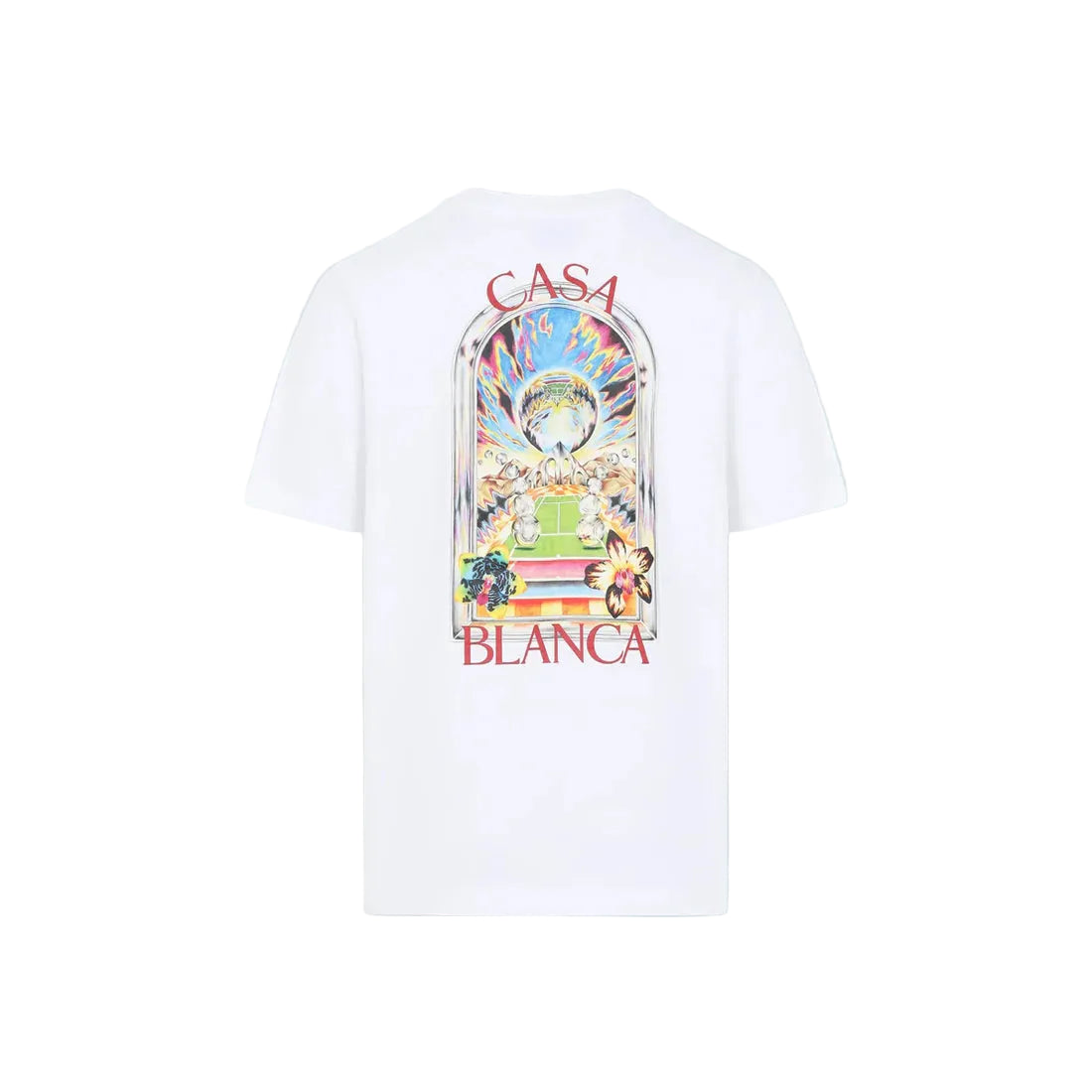 The Casablanca Tennis Landscape Classic Tee in 'White' channels the brand’s signature blend of sport-inspired design and refined aesthetics, featuring a striking tennis landscape graphic on soft cotton jersey. With a classic crewneck and relaxed silhouette, this tee offers everyday comfort with elevated visual appeal.