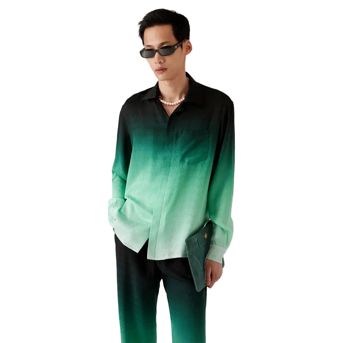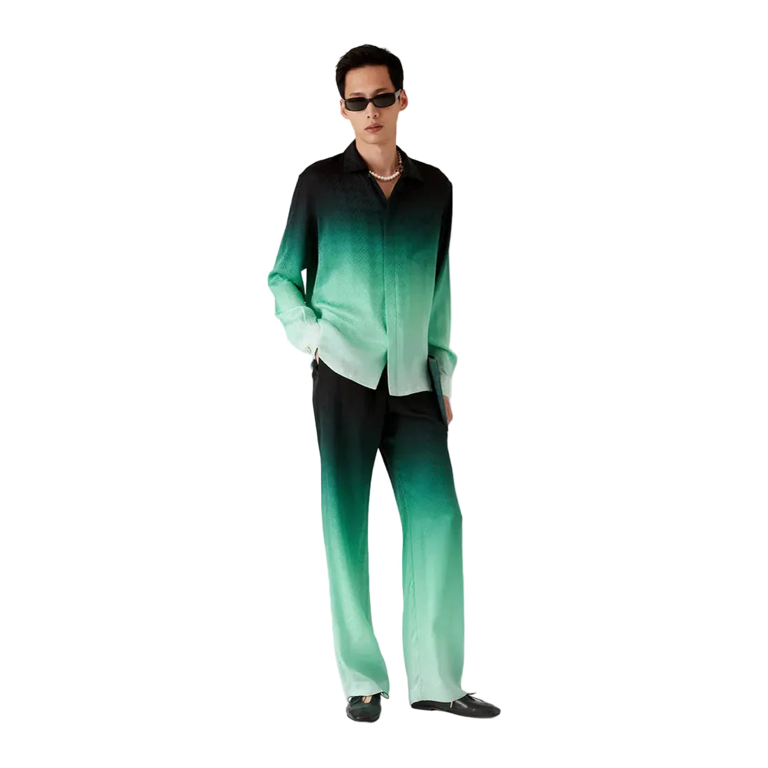 Casablanca Gradient Ping Pong Jacquard Long Sleeve Silk Shirt 'Green Black'