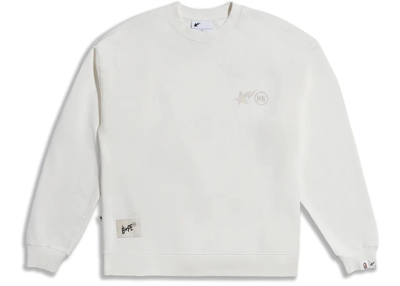 Ivory crewneck with BAPE x Highsnobiety branding