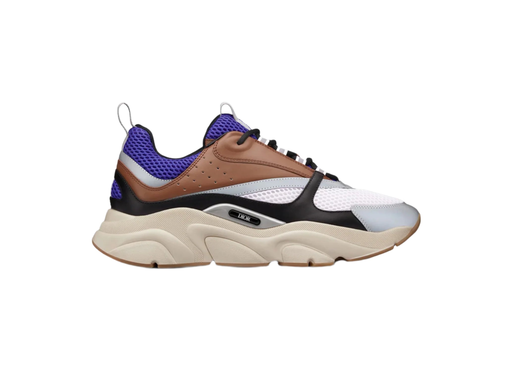 The Dior B22 ‘Coffee Violet’ reimagines the chunky sneaker with a luxurious twist. Featuring a layered upper crafted from white and burgundy calfskin, gold-tone laminated leather, and technical mesh, it delivers a bold, retro-inspired aesthetic. Round laces and a raised Dior signature on the side complement the sculpted white rubber sole with black edging. Finished with nylon tabs and a lace-up closure, this low-top sneaker offers a sporty yet sophisticated look.