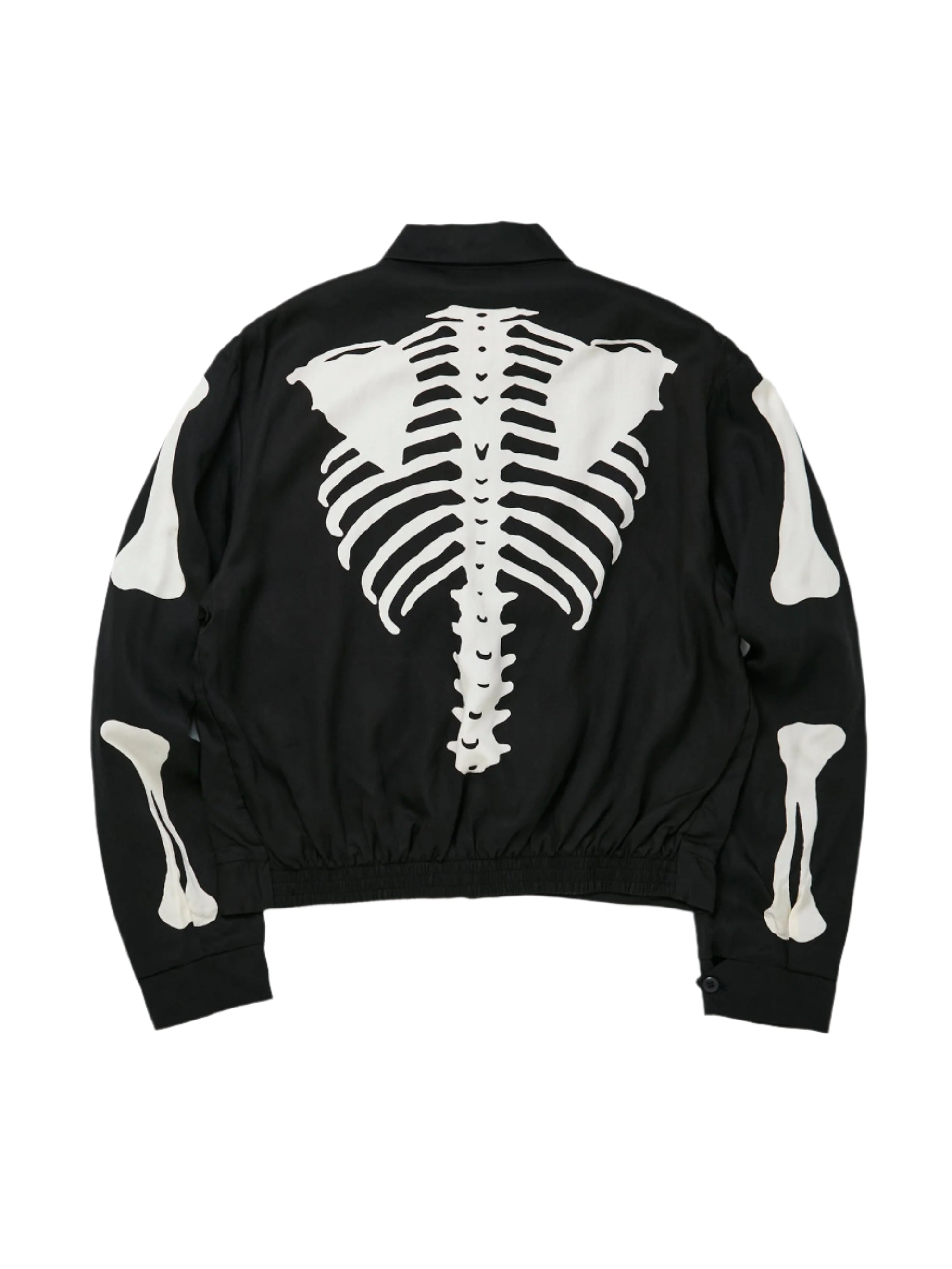 Each jacket is hand-dyed and printed with Kapital’s iconic cream-colored bone motif that wraps the front, back, and sleeves for bold visual appeal