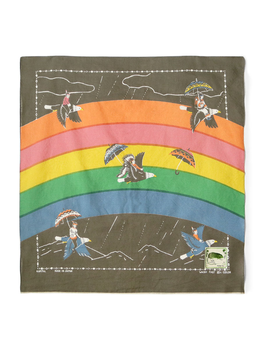 Kapital Fastcolour Selvedge Rainbow & Birds Bandana 'Khaki'