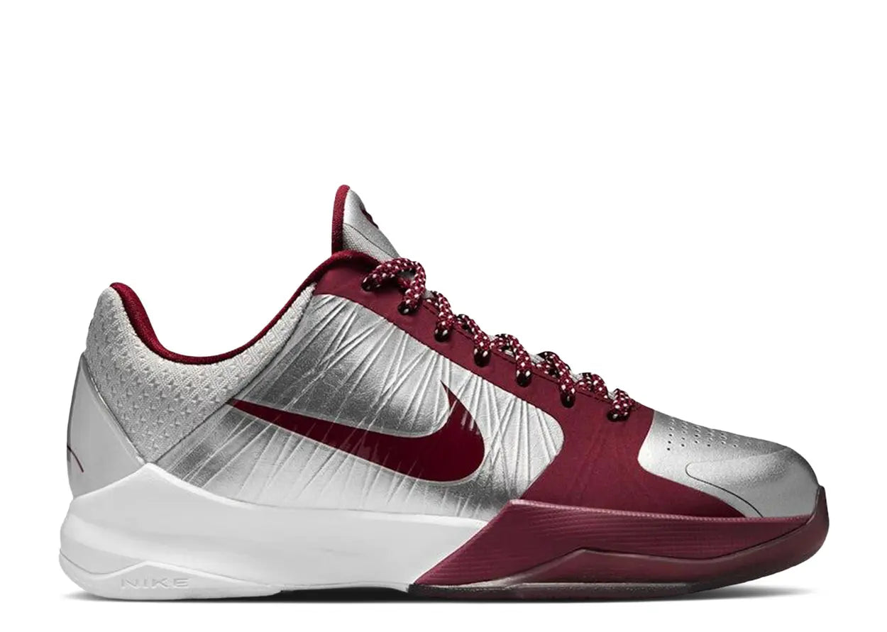 The Nike Kobe 5 Protro 'Lower Merion Aces Away' 2026 (GS) brings back a meaningful piece of Kobe Bryant’s early basketball journey, using the Lower Merion Aces colour palette to tell that story. Metallic silver creates a sleek base, while team red and white accents add contrast that reflects the team’s identity.