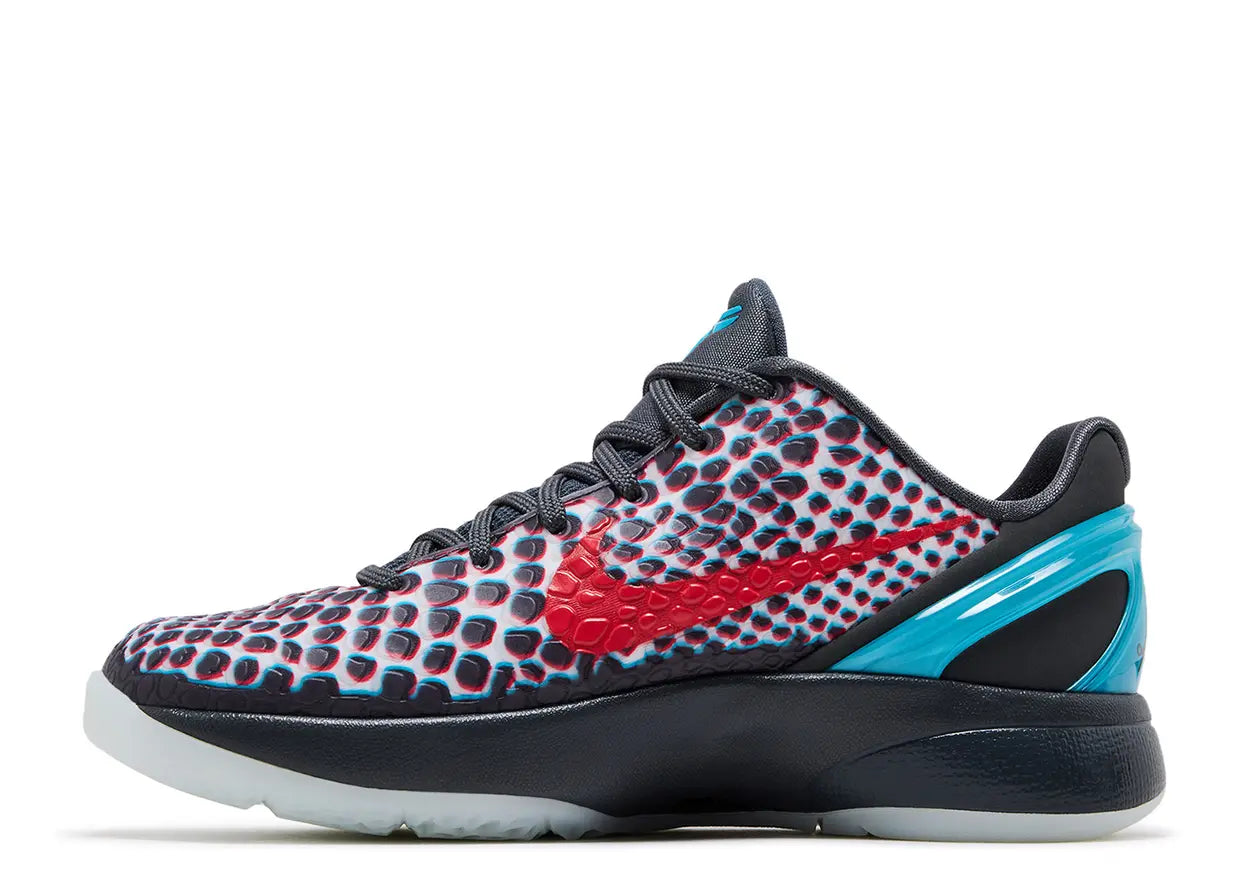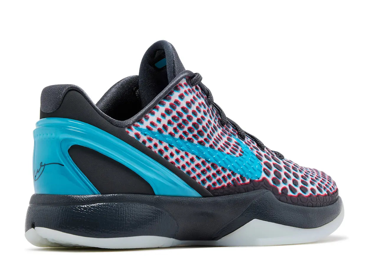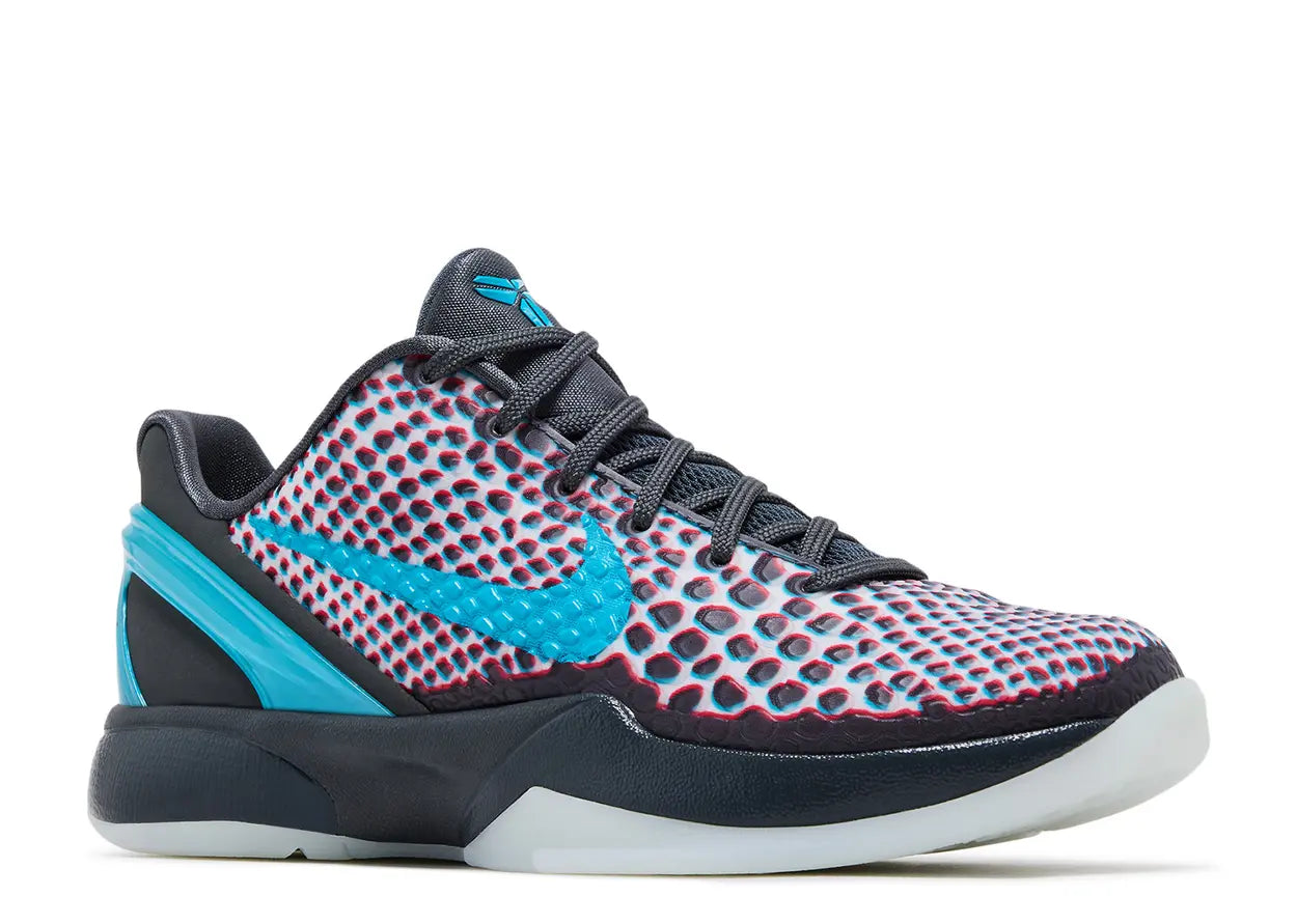 The Kobe 6 Protro 'ASG Hollywood 3D' 2026 (GS) brings cinematic flair to one of the most beloved Kobe silhouettes. Dark Grey forms the base, while chlorine blue and daring red accents inject contrast that feels vibrant and stage ready. The textured upper and low cut build maintain the signature Kobe 6 profile that fans instantly recognize.