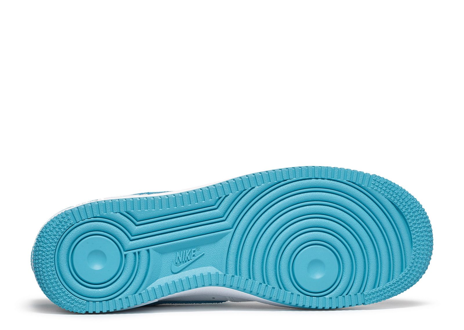 The Space Jam x Air Force 1 part of the Space Jam: A New Legacy collection, pays tribute to LeBron's rabbit teammates. It features a white leather upper with light blue fury suede on the swoosh and heel. Bugs Bunny appears on the right shoe's tongue and side patch, while Lola Bunny is on the left. Cushioning comes from the air midsole, finished with a light blue fury rubber outsole for traction.