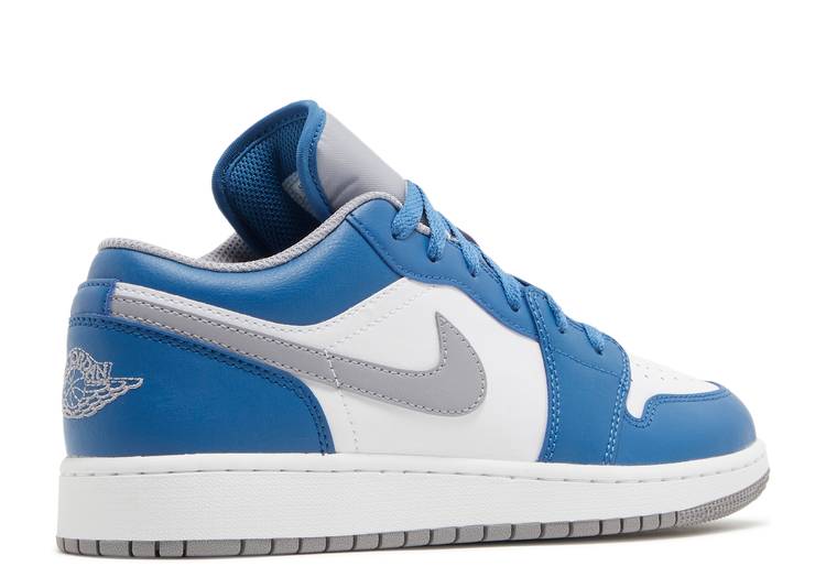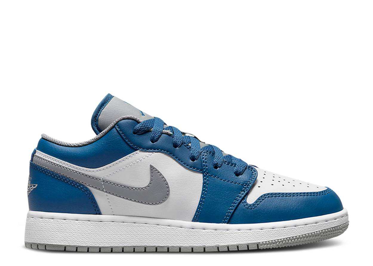 Buy the Air Jordan 1 Low 'True Blue Cement' (GS) today.