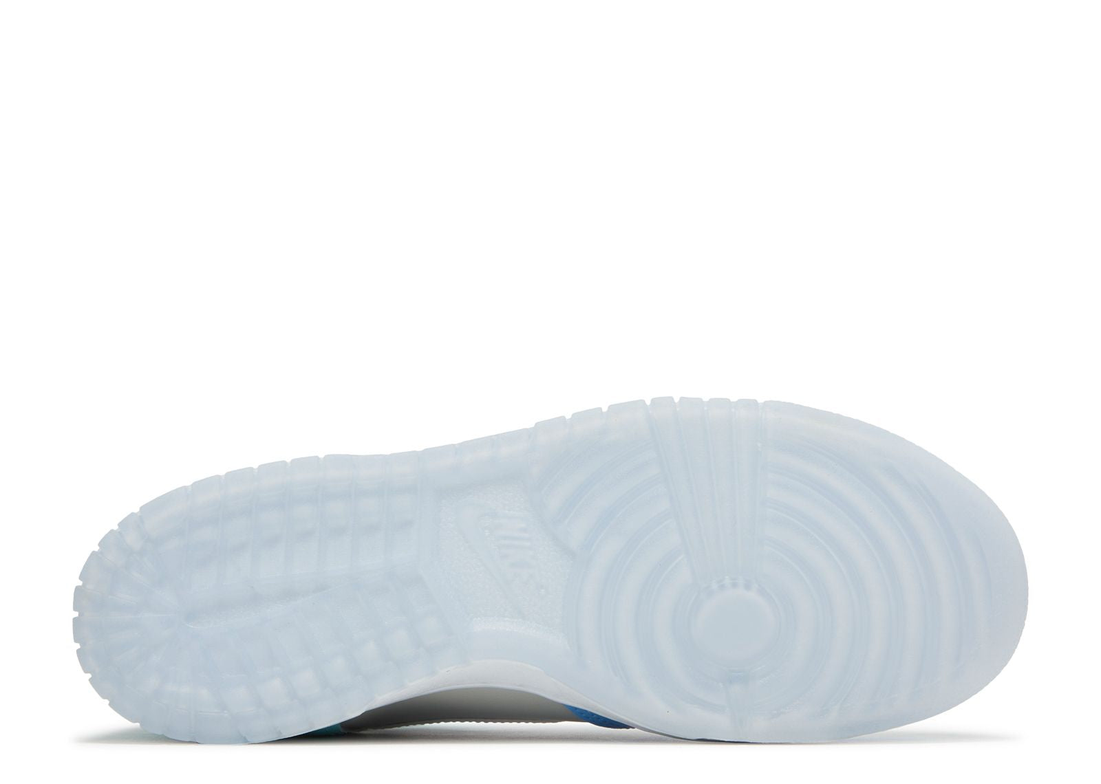 The Dunk High ‘I Got Next’ (GS) features a premium leather upper in powder blue, aqua, and light grey. A clear rubber outsole provides traction, while a white swoosh on the lateral side flips to blue patent leather with water-drop details on the medial side. 'I Got Next' branding on the heel adds a basketball-inspired touch.