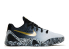 It features a breathable black engineered mesh upper, a clean white midsole, and gold accents on the swoosh and Kobe logos. “Gigi” and her jersey number “2” appear on the heel tabs as a heartfelt tribute. Lunarlon cushioning and a grippy outsole provide comfort and performance on the court.