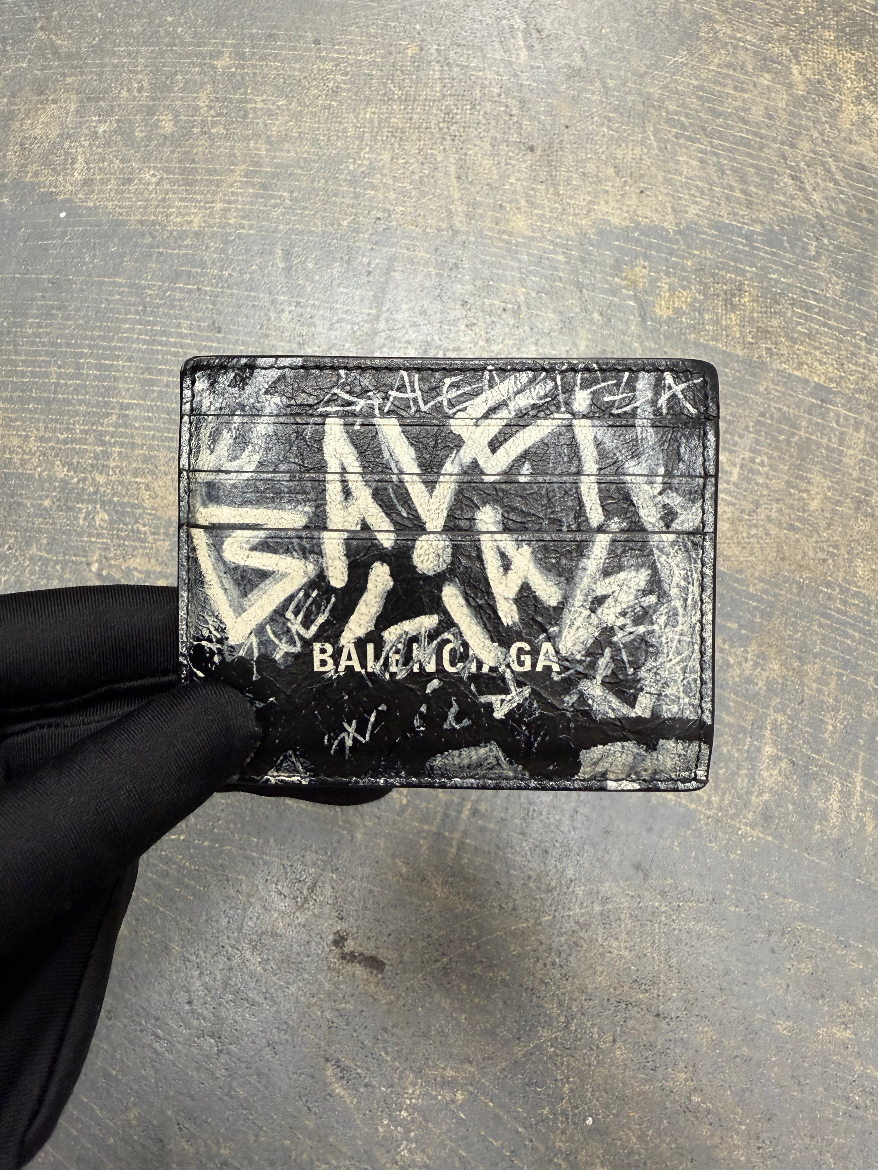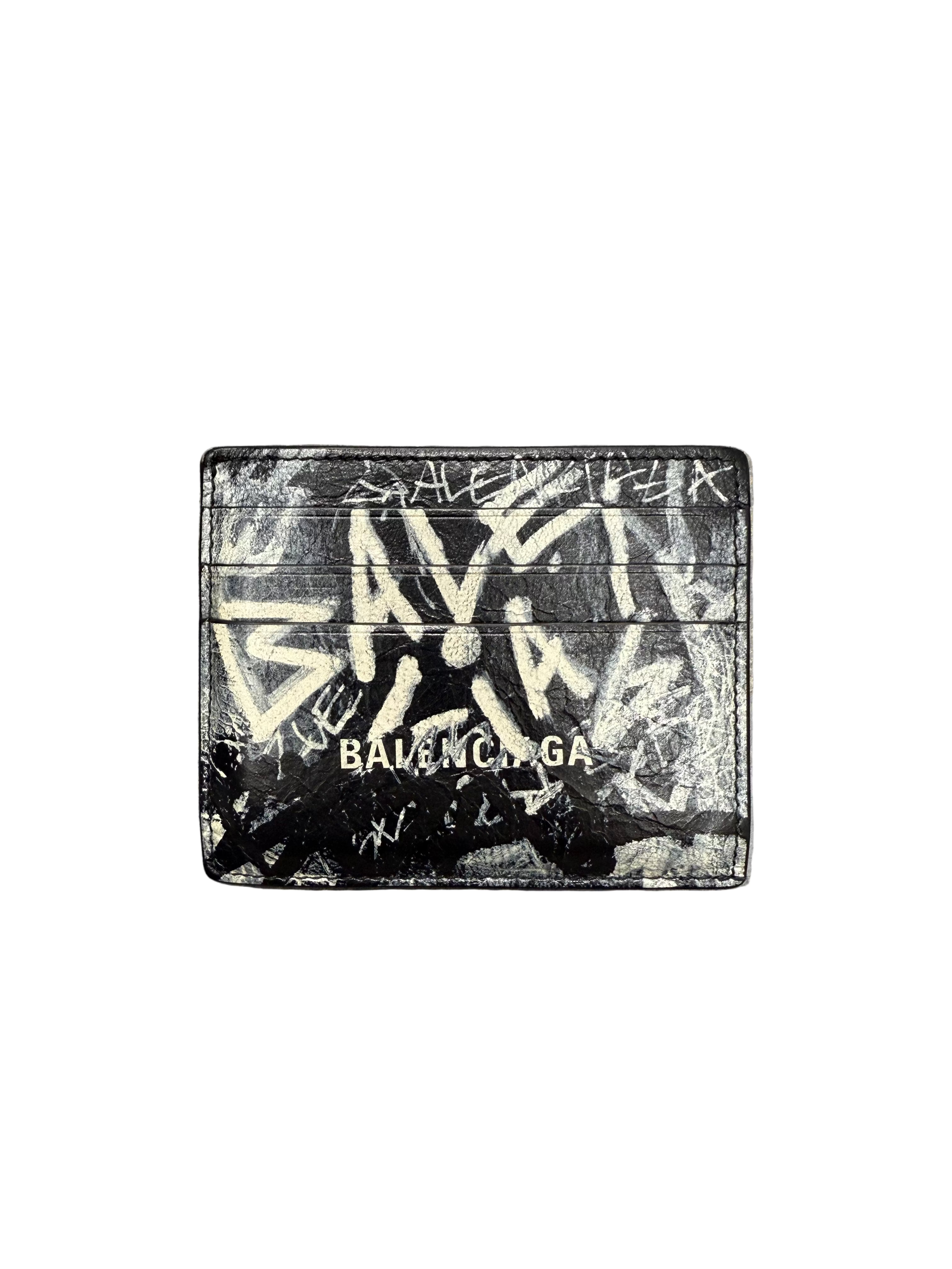 Balenciaga Graffiti Print Card Holder 'Black'