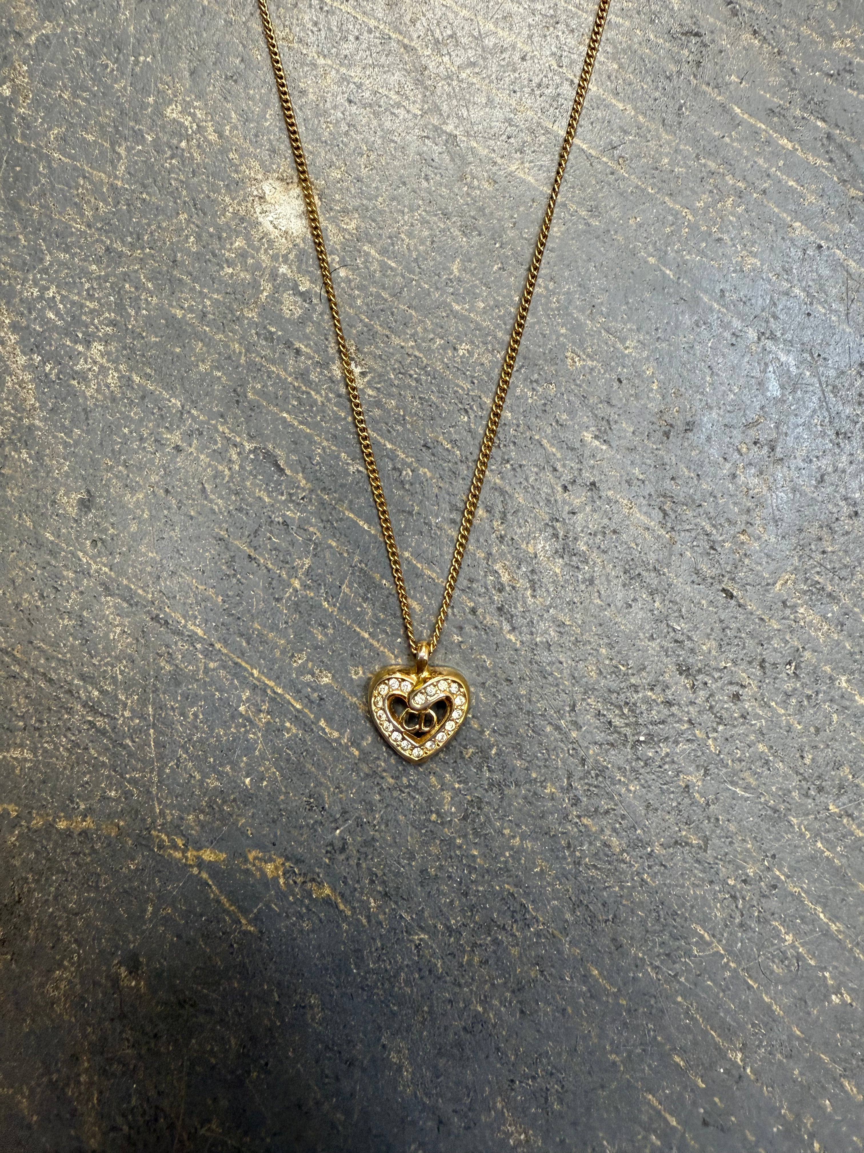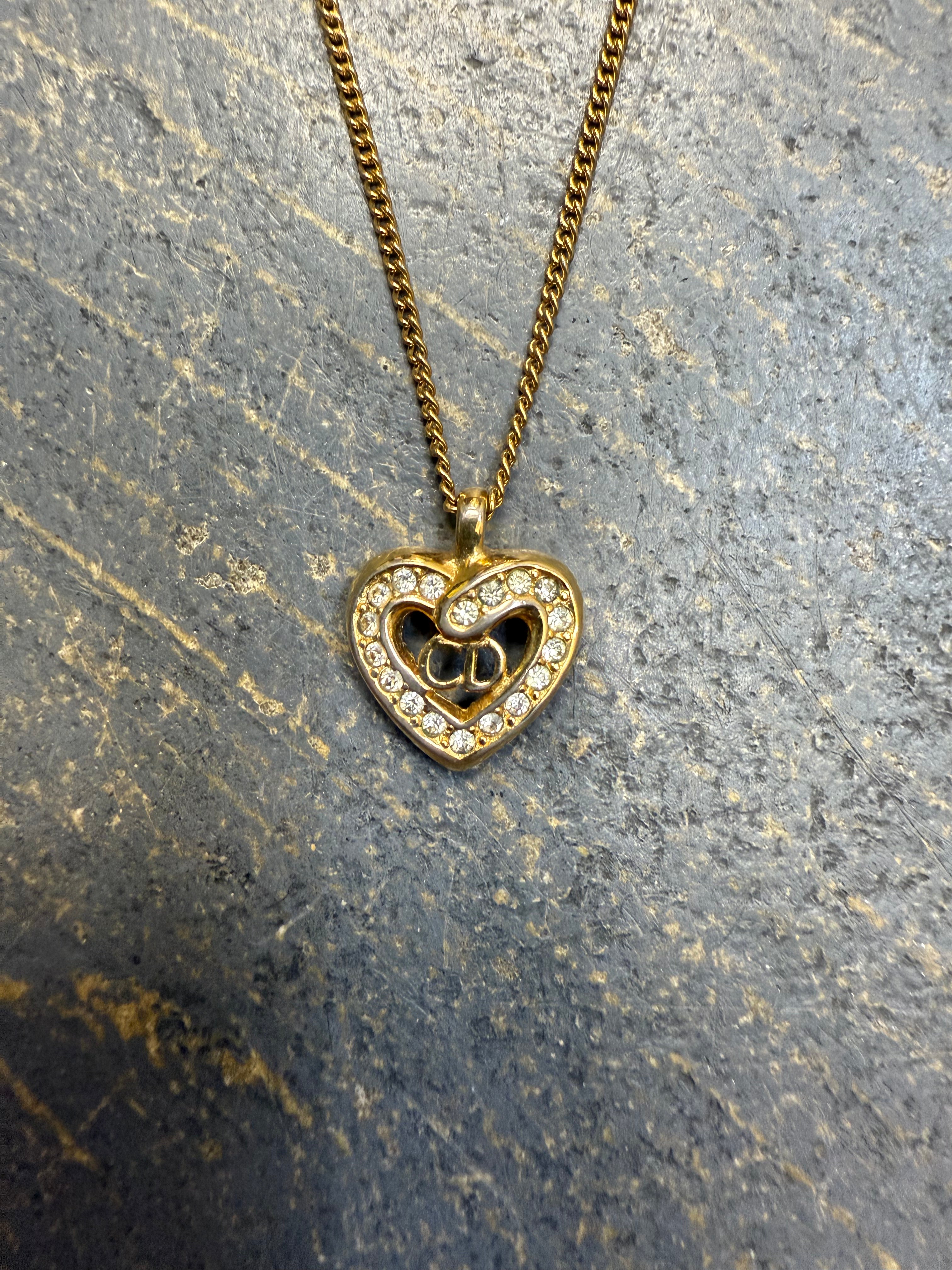 Dior CD Logo Heart Rhinestone Necklace 'Gold'