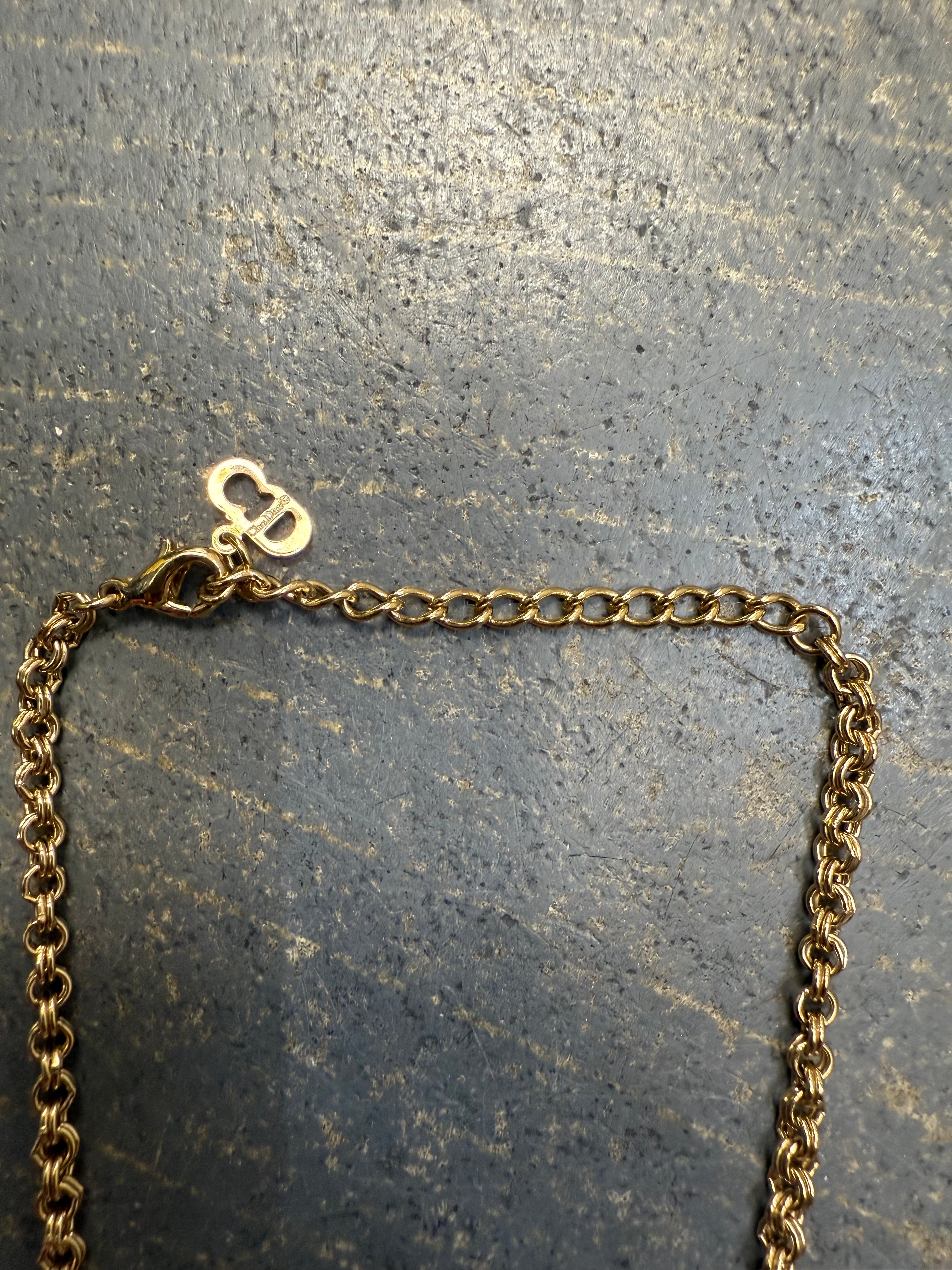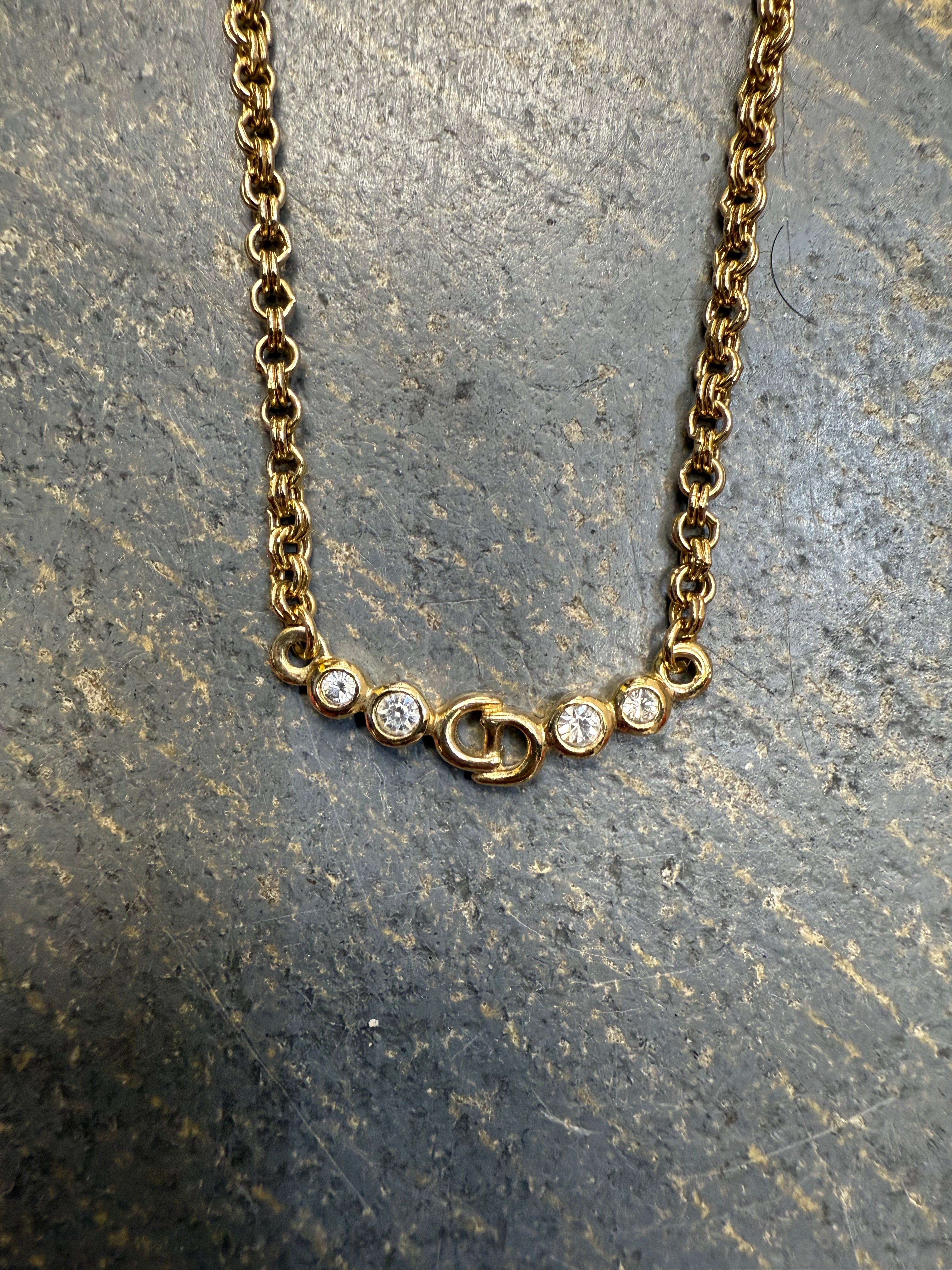 Dior CD Logo Rhinestone Necklace 'Gold'