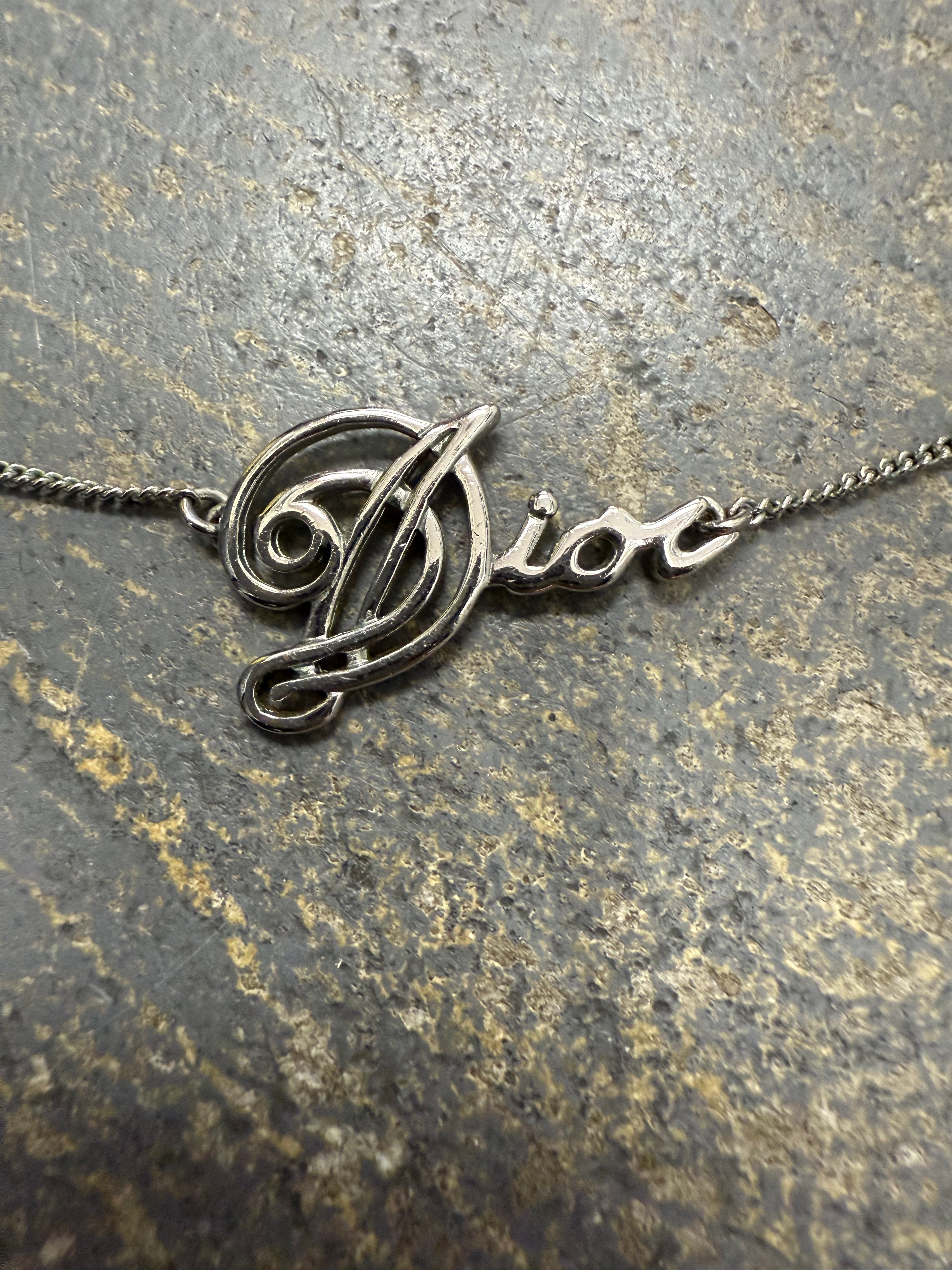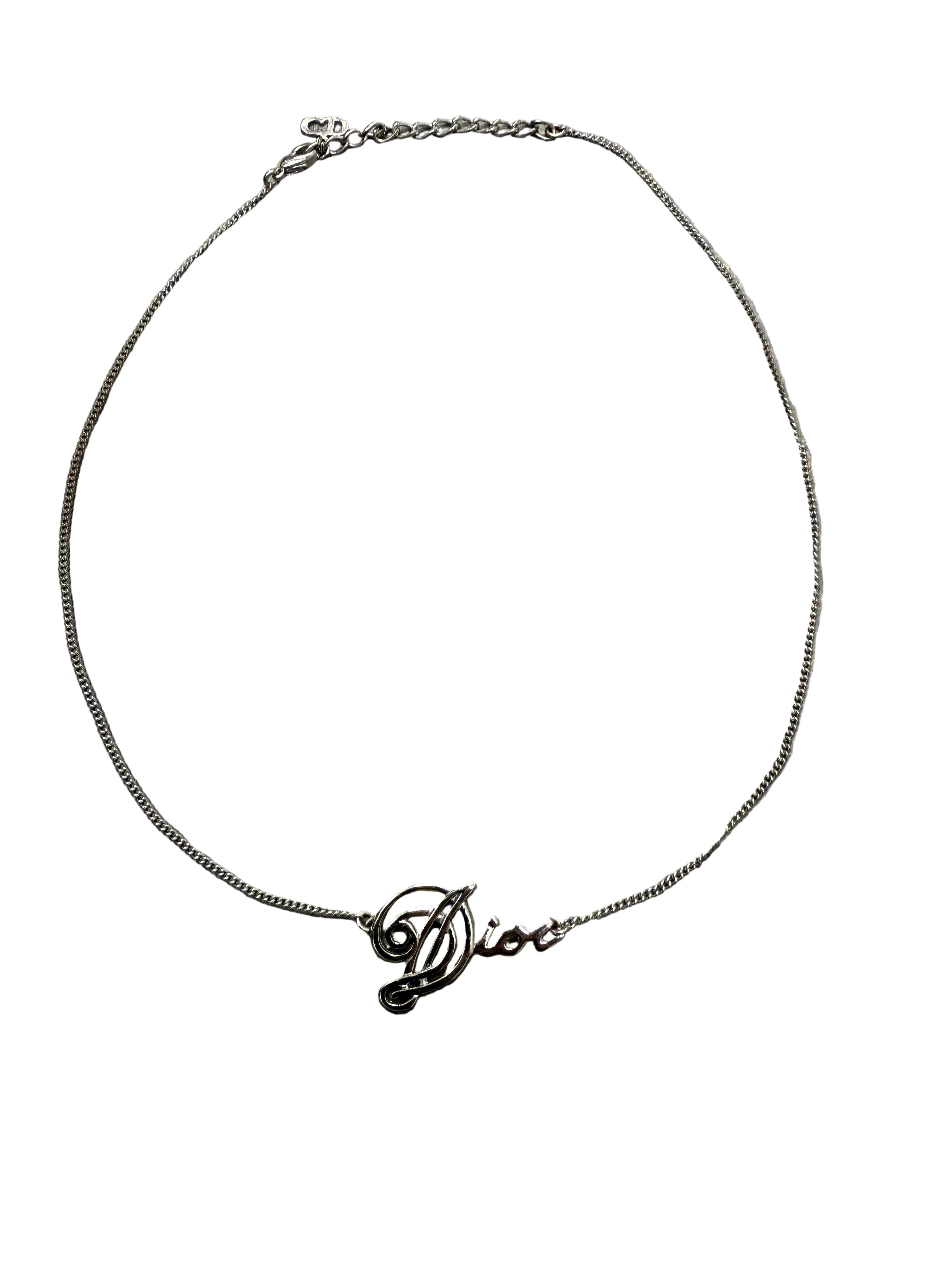 Buy the Dior Script Logo Necklace 'Silver' today.