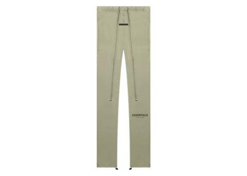 Fear of God Essentials Track Pant ‘Pistachio’ FW21 – lightweight cotton-nylon blend track pants with relaxed fit, elongated drawcord, and ESSENTIALS branding on left leg.