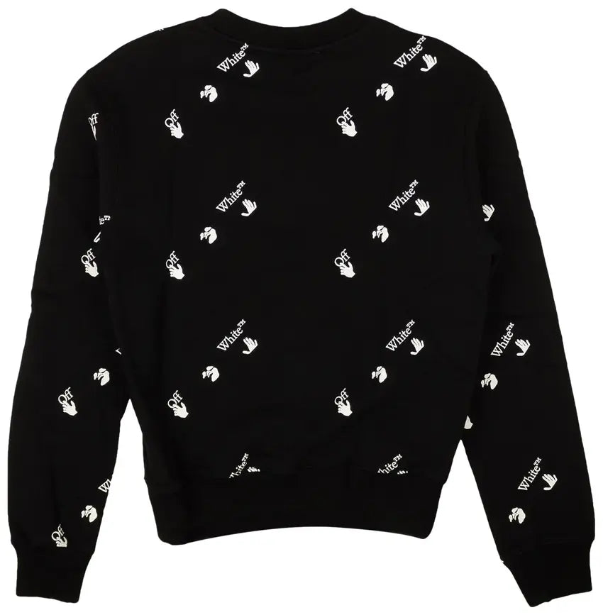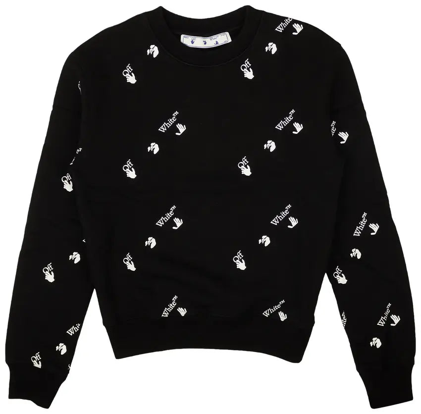 Slim-fit crewneck in black with white allover Off-White branding graphics for a bold, urban streetwear aesthetic.