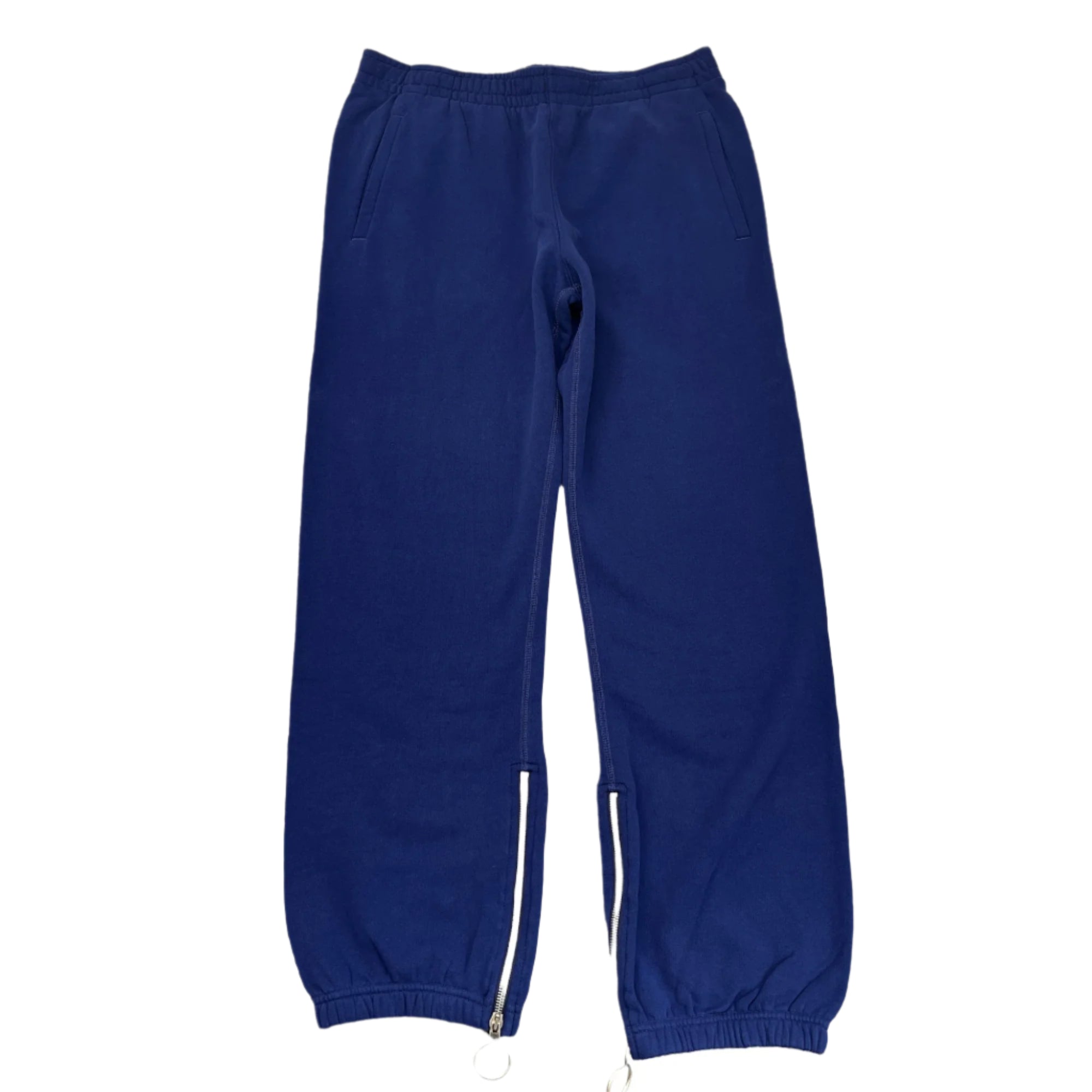The Off-White Rubber Arrow Zip Sweatpants in 'Blue' deliver a mix of comfort and street-ready edge. Crafted from soft cotton fleece, these sweats feature a tapered fit with elastic cuffs and functional zip detailing along the legs. The standout detail comes from Off-White’s signature Rubber Arrow logo on the back, adding a bold graphic hit to the clean silhouette.