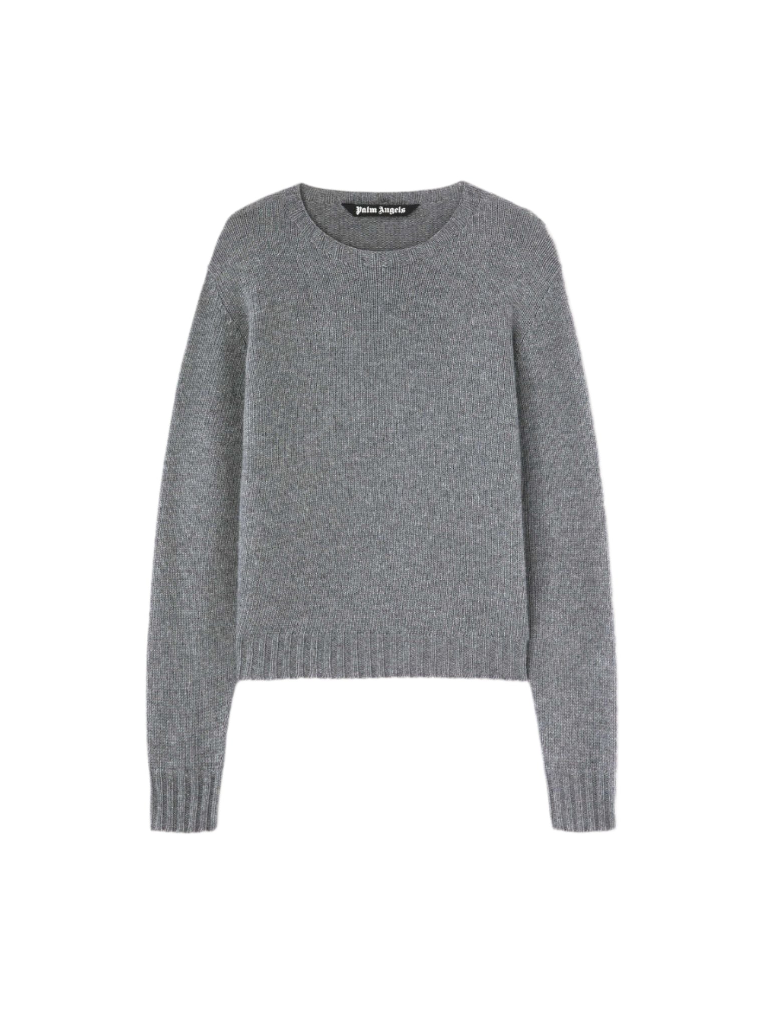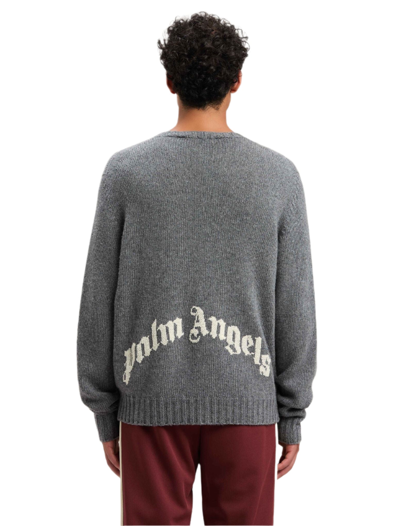 Buy the Palm Angels Curved Logo Sweater 'Grey Melange' today.
