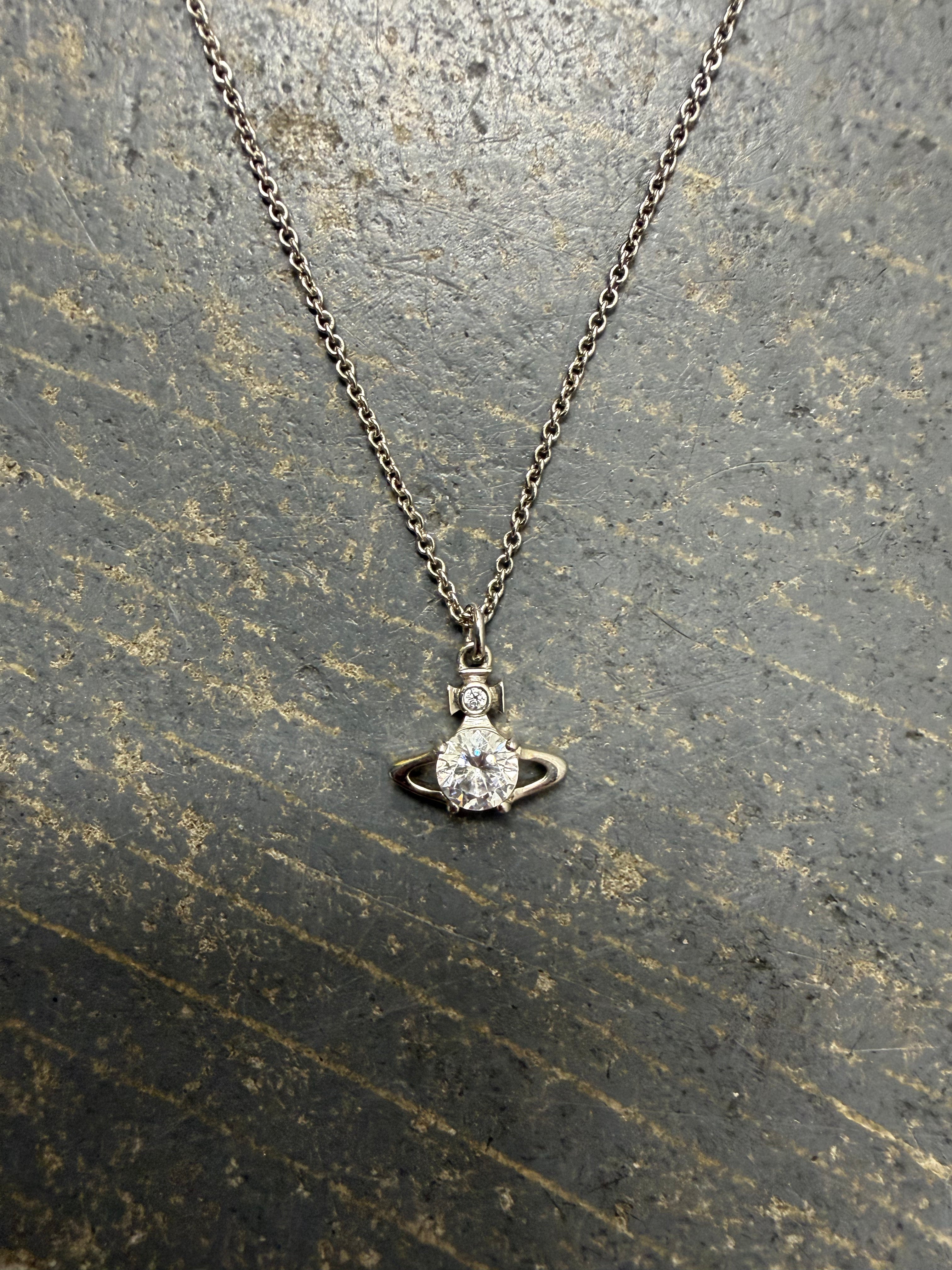 Vivienne Westwood Heart Orb Rhinestone Necklace 'Silver'