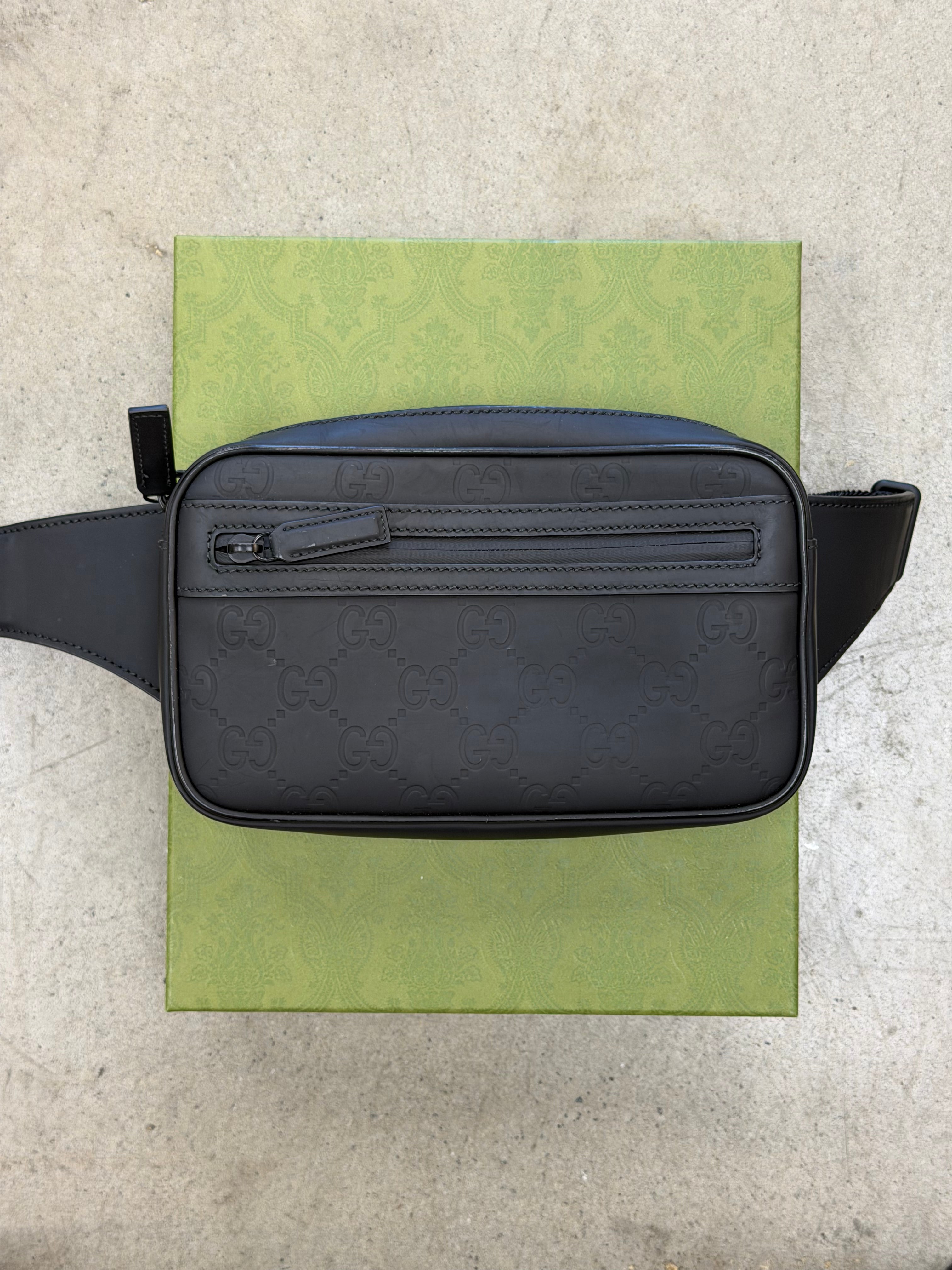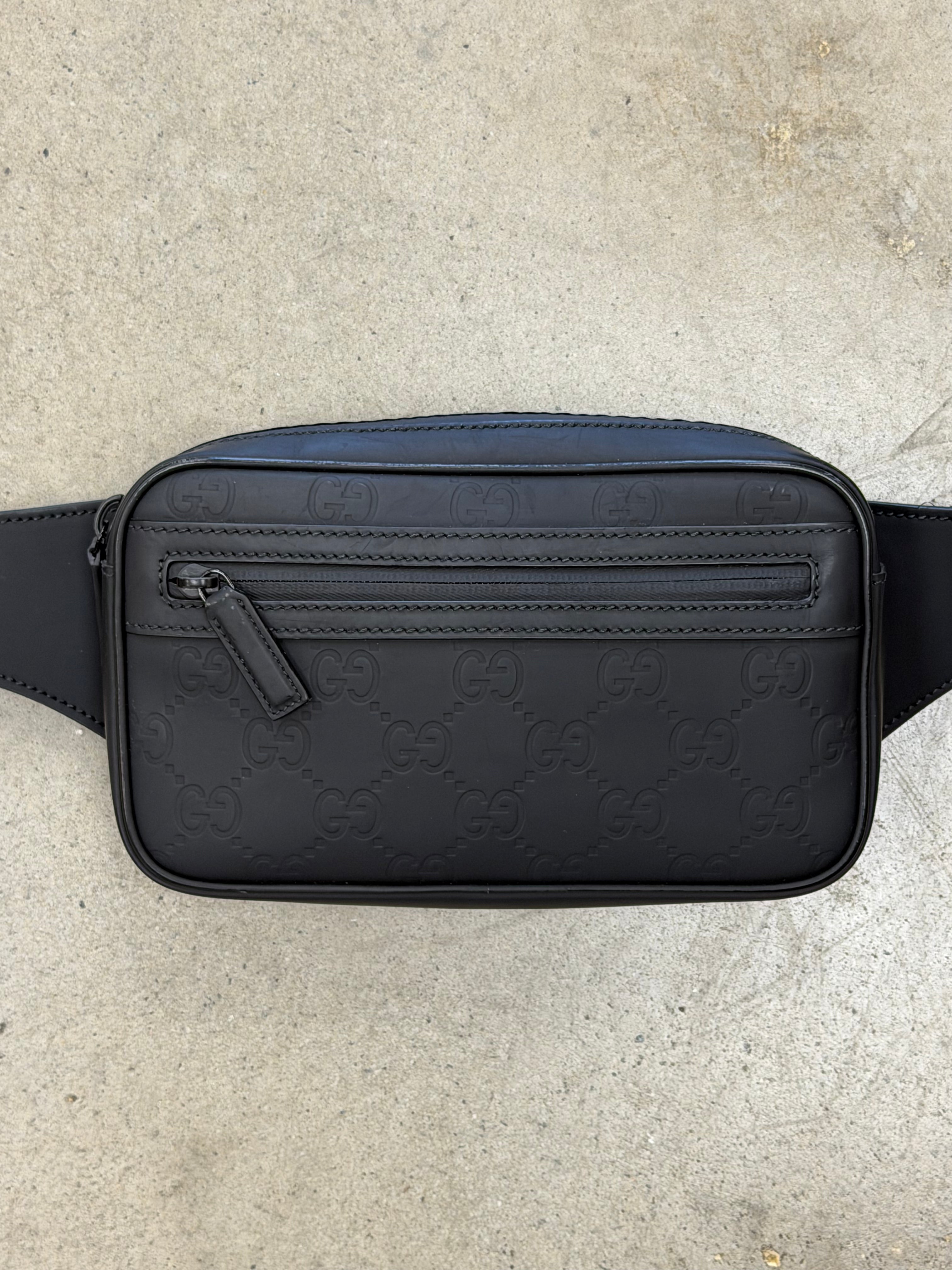 Gucci Monogram Debossed Leather Belt Bag 'Black'
