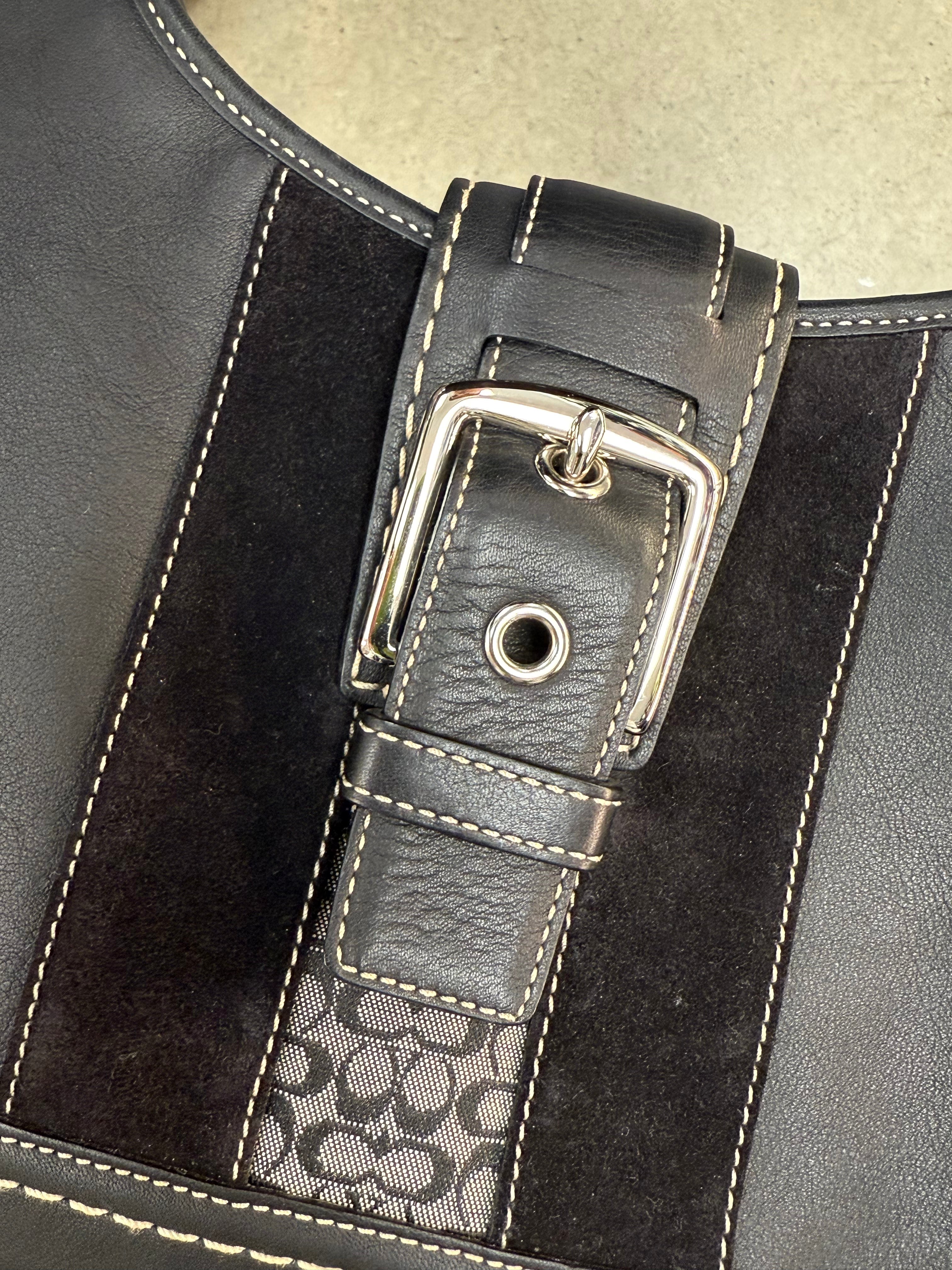 Coach Hamilton Hobo Stripe Monogram Leather Shoulder Bag 'Black'