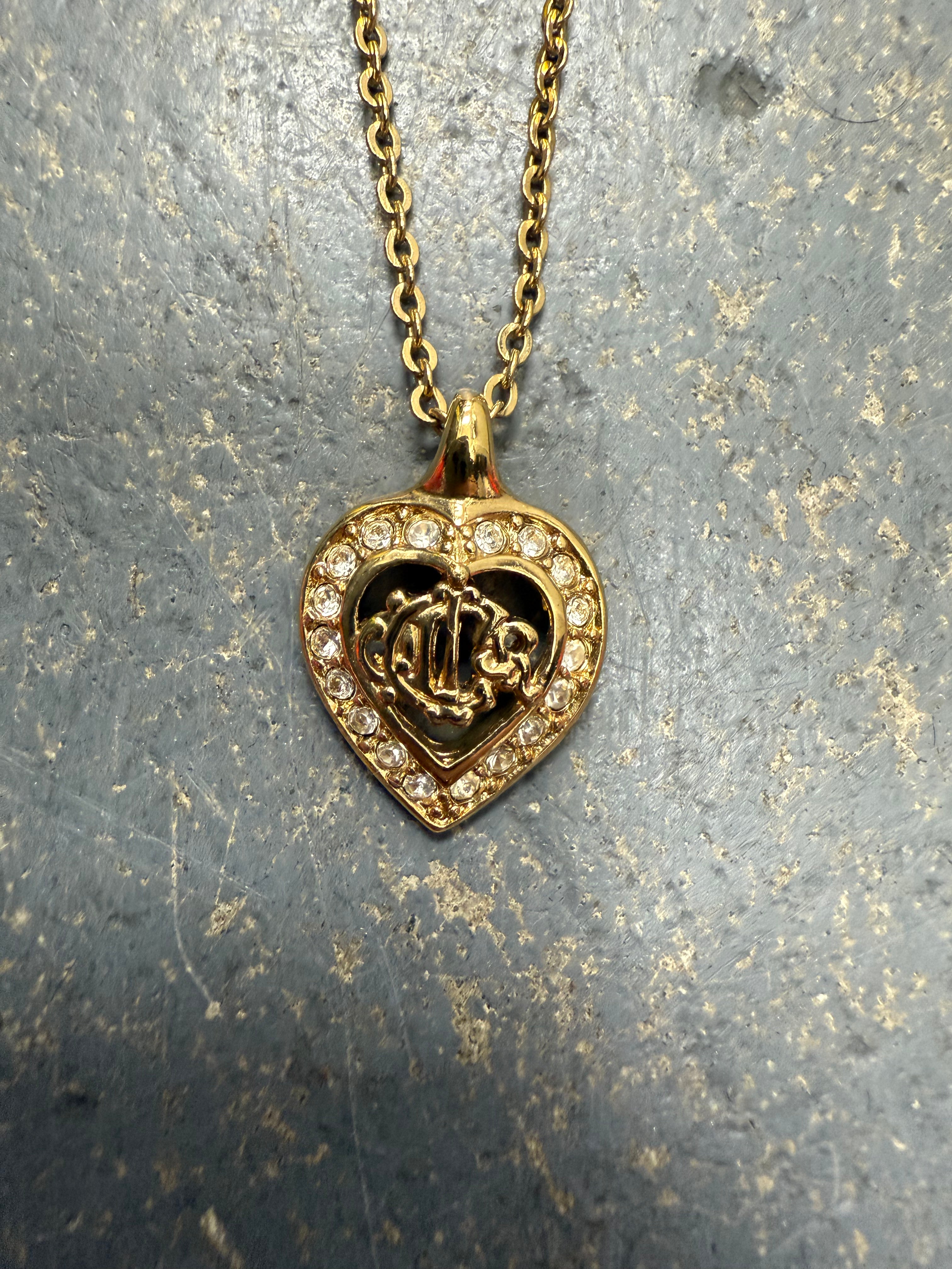 Dior Logo Heart Rhinestone Necklace 'Gold'
