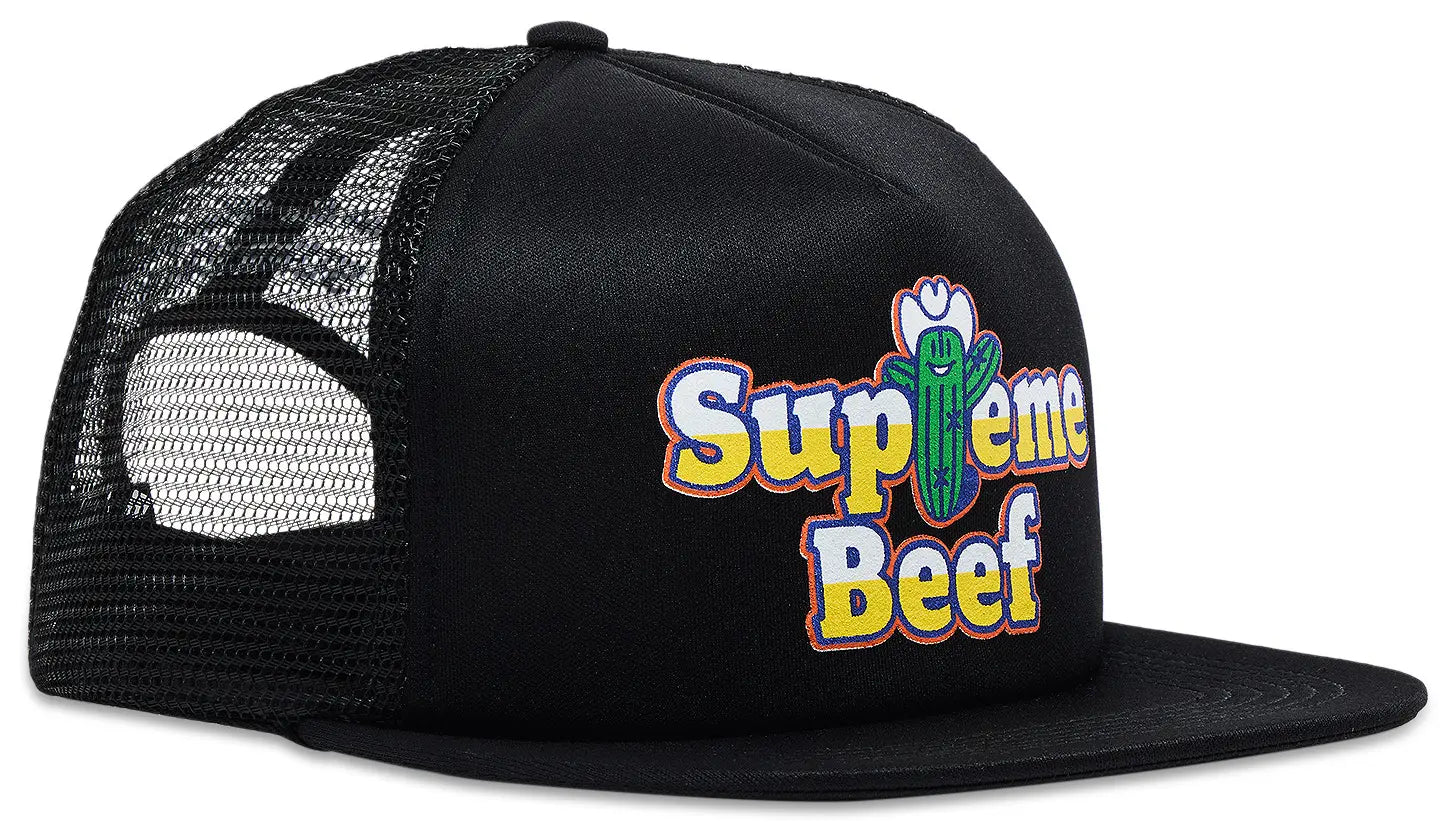 Built for statement style and lightweight wear, the Supreme Beef Mesh Back 5‑Panel 'Black' brings playful energy to your everyday fit. Featuring a bold graphic and breathable construction, it’s designed to stand out while staying cool.