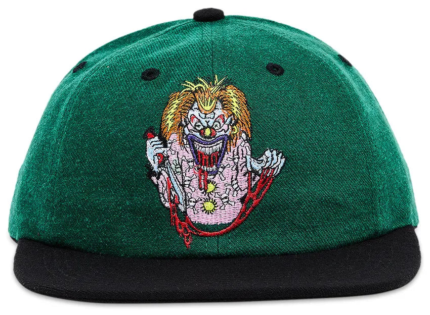 Bold, playful, and packed with attitude — the Supreme Clown 6 Panel in 'Green' blends classic headwear design with standout personality. Featuring a custom clown graphic embroidery up front, this cap brings a twist of Supreme's irreverent edge to your fit.