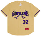 The Supreme Swords Baseball Jersey in 'Gold' is a standout piece from Supreme’s Fall/Winter 2025 collection, marrying classic athletic heritage with streetwear edge. Designed with bold embroidered sword graphics and contrast piping, this relaxed-fit jersey delivers an elevated take on vintage sportswear style — perfect for layering or wearing as a statement top.