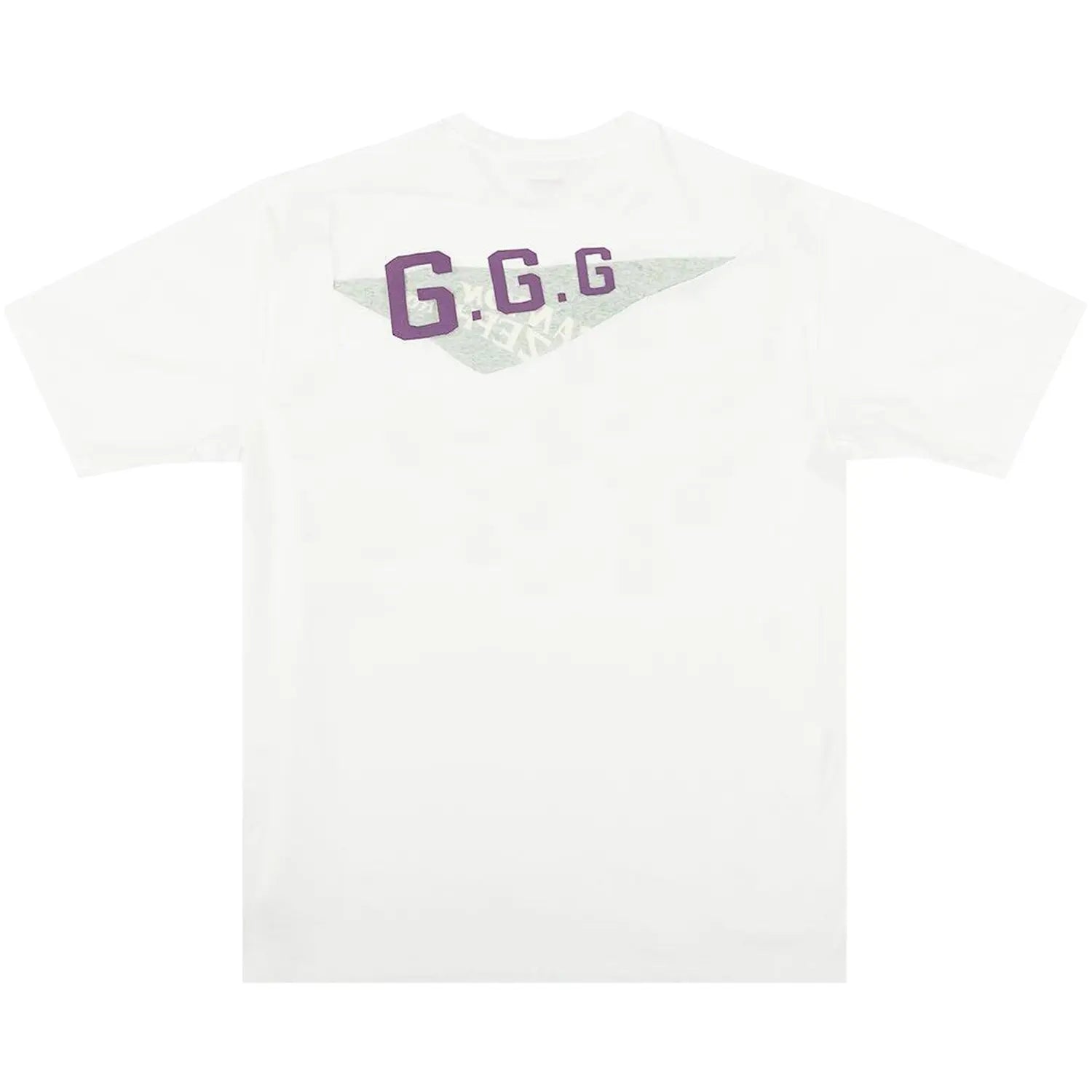 Multiple “G.G.G.” motifs contribute to the design, aligning with Kapital’s collegiate and vintage-inspired graphics