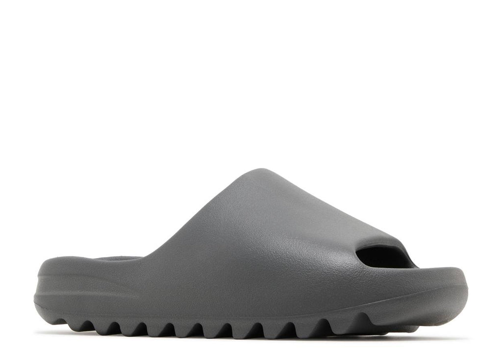 The Yeezy Slide 'Granite' is made from a single piece of durable, lightweight EVA foam in a deep grey shade. Its design features a wide strap upper for a secure fit and a soft footbed adorned with adidas' iconic three-stripe logo. For enhanced traction and a smooth stride, the outsole is sculpted with strategically placed grooves.