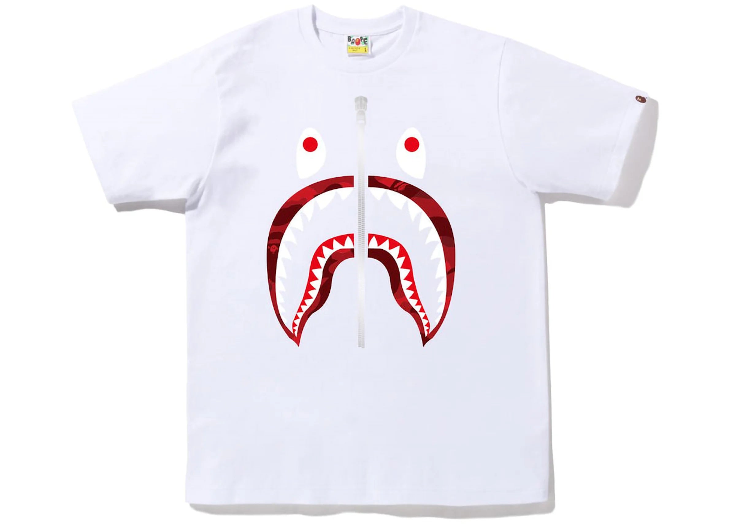 Buy the Bape Colour Camo Silver Zip Shark Tee 'White Red' today.