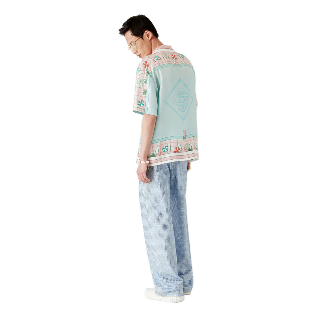 Buy the Casablanca Cuban Collar Silk Short Sleeve Shirt Copacabana 'Pink' today.