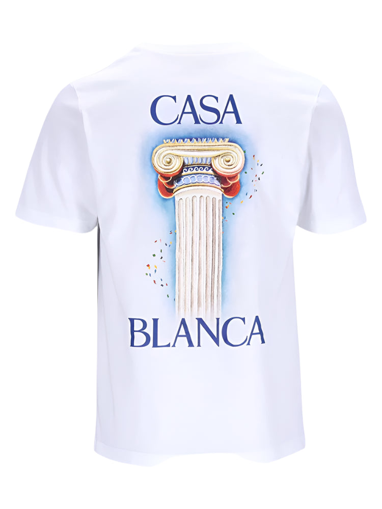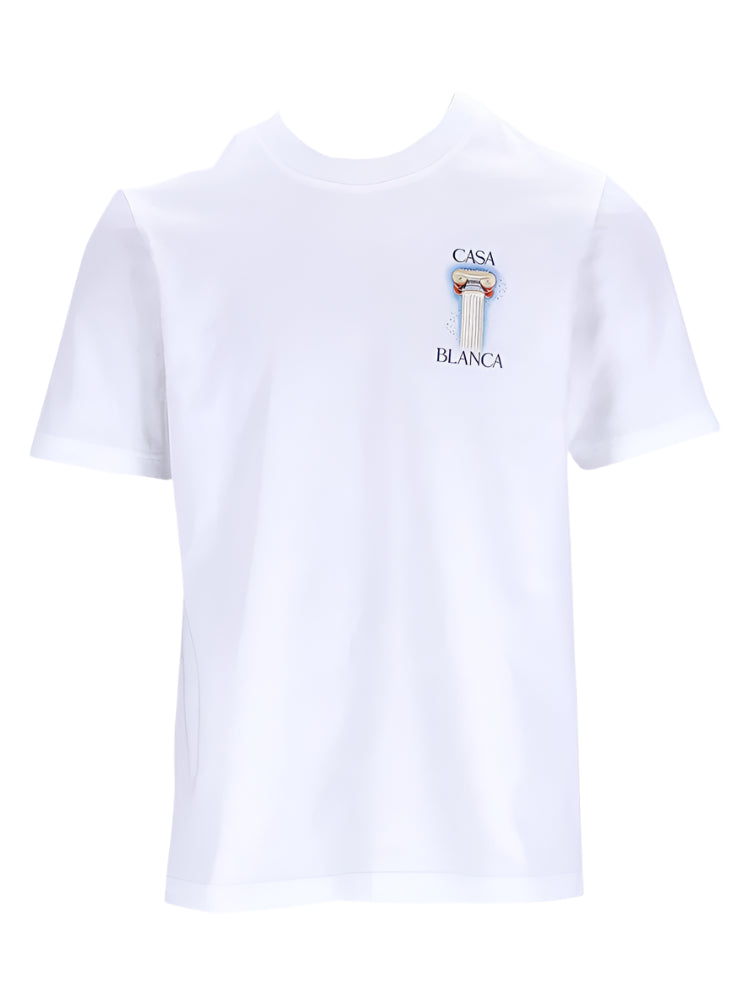 Crewneck t-shirt in white with Casablanca’s La Colomne printed graphic for a subtle yet elevated streetwear look.