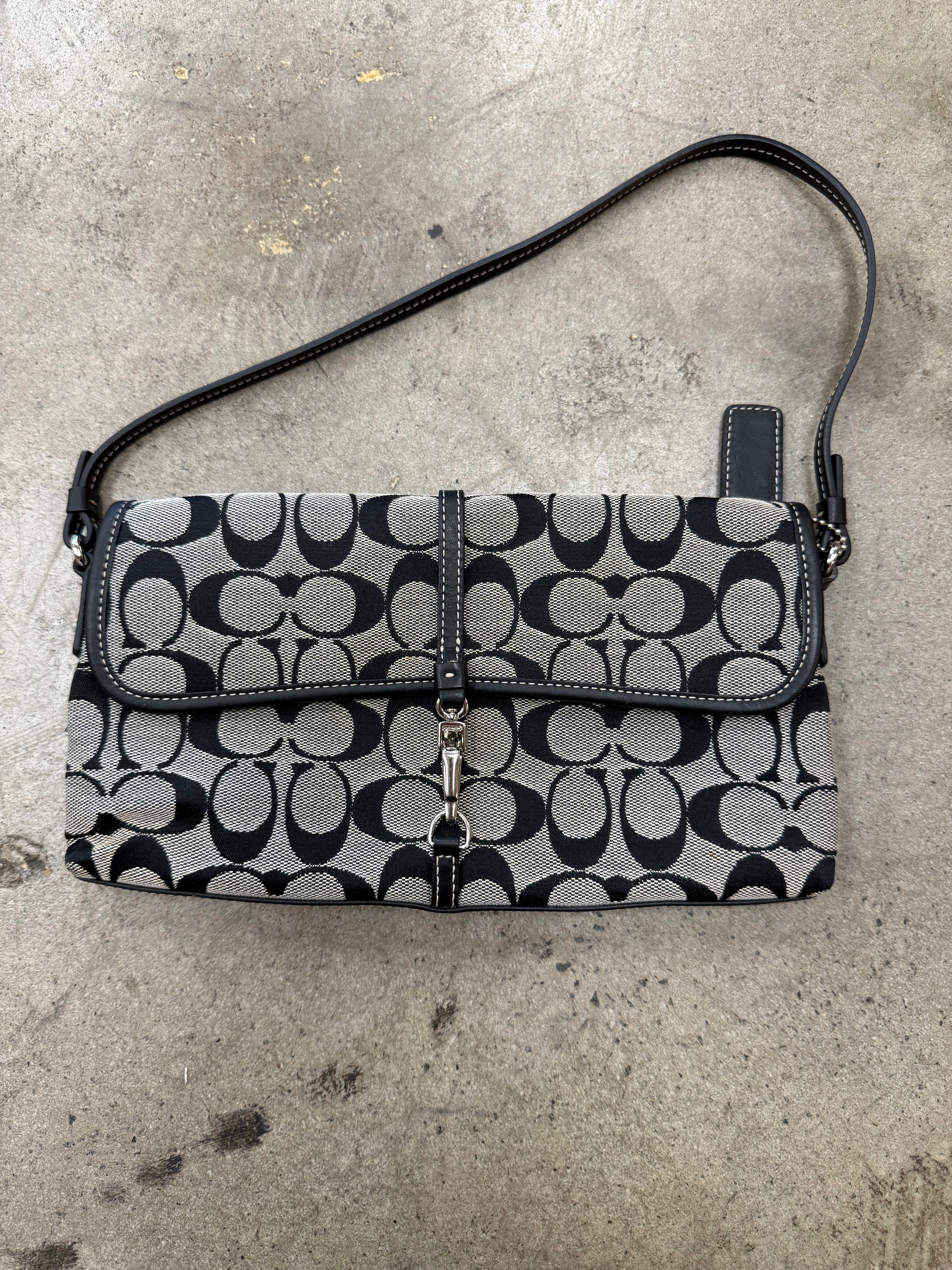 Coach Signature Demi Clip Baguette Shoulder Bag Black
