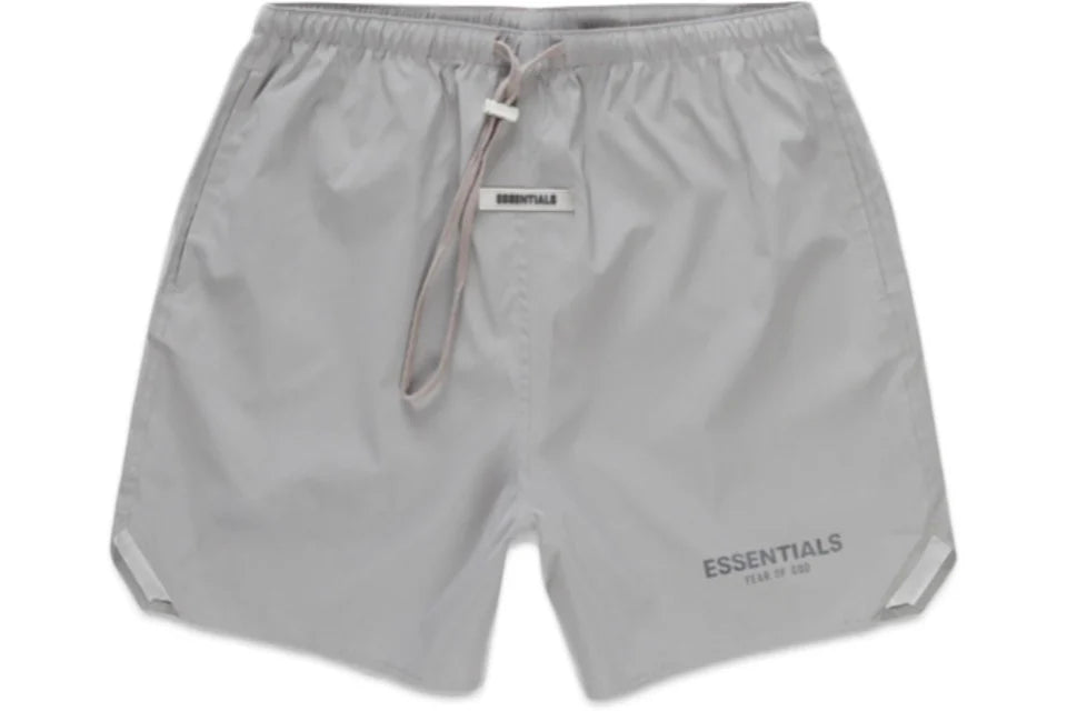 The Essentials Volley Shorts 'Silver Reflective' deliver a clean, modern staple with a technical edge. Cut in Fear of God’s signature relaxed fit, these shorts feature a lightweight construction with a reflective silver finish that catches the light for a standout look. The elastic waistband with adjustable drawstrings ensures all-day comfort, while the minimalist Essentials logo adds a subtle streetwear touch. Perfect for summer layering or athleisure styling, they balance everyday wearability with elevated detail.