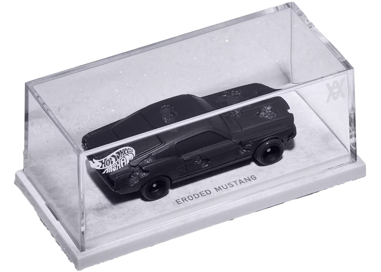 The Hot Wheels x Daniel Arsham Eroded Ford Mustang ‘Black’ transforms the classic Ford Mustang into a collectible art piece. Part of the collaboration with contemporary artist Daniel Arsham, this figure blends Hot Wheels nostalgia with sculptural, eroded design for a standout collectible.